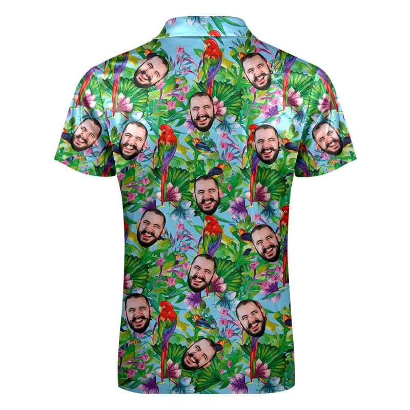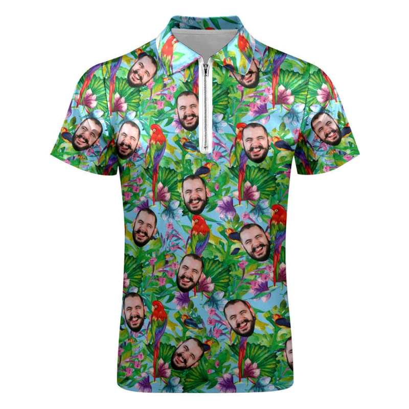 Individuelles Poloshirt Mit Reißverschluss, Personalisiertes Gesicht Im Hawaiianischen Stil, Herren-poloshirt Für Ihn