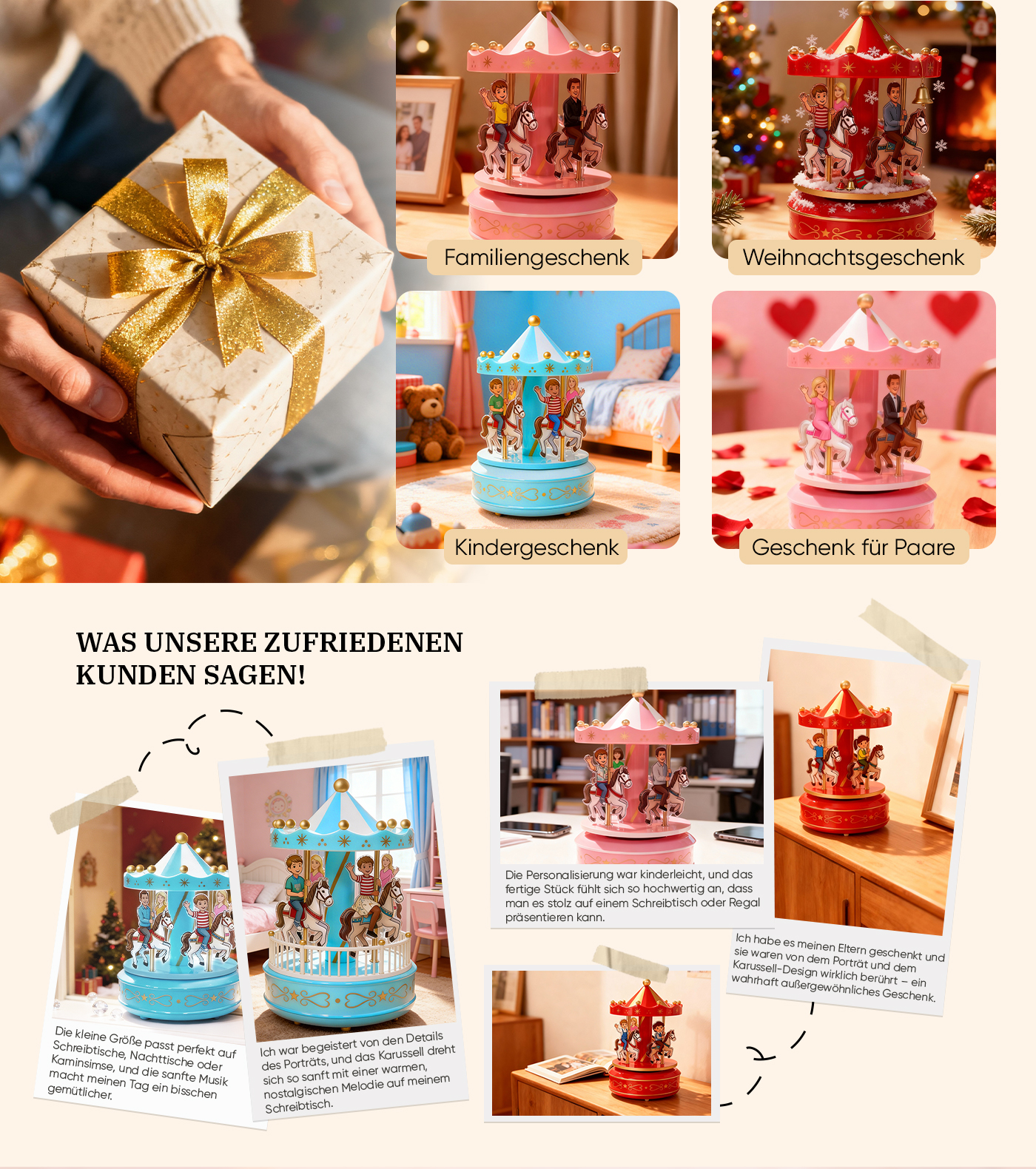 - Personalisierung: Gestalten Sie ein individuelles Porträtkarussell mit 3 bis 6 Familienmitgliedern (Platz für mehrere Gesichter und ein harmonisches Gruppenbild).