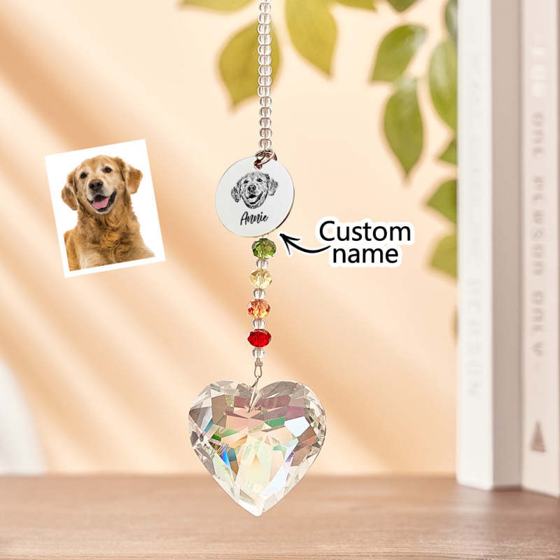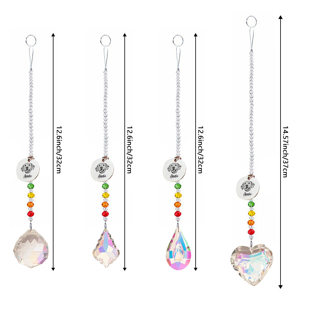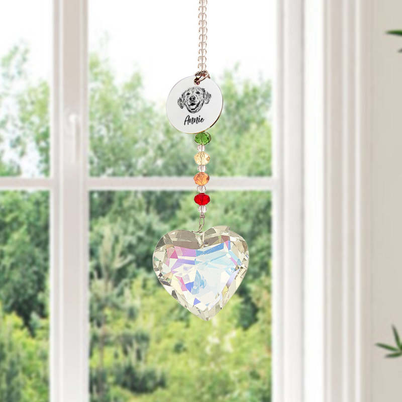 Dieser individuelle Regenbogen-Sonnenfänger ist eine perfekte Möglichkeit, Ihr geliebtes Haustier zu ehren. Es besteht aus hochwertigem Kristall, fängt das Licht ein und reflektiert einen wunderschönen Regenbogen. Dieser Sonnenfänger ist ein aufmerksames und herzliches Geschenk für Tierliebhaber und dient als bleibendes Andenken für Ihren geschätzten Begleiter.