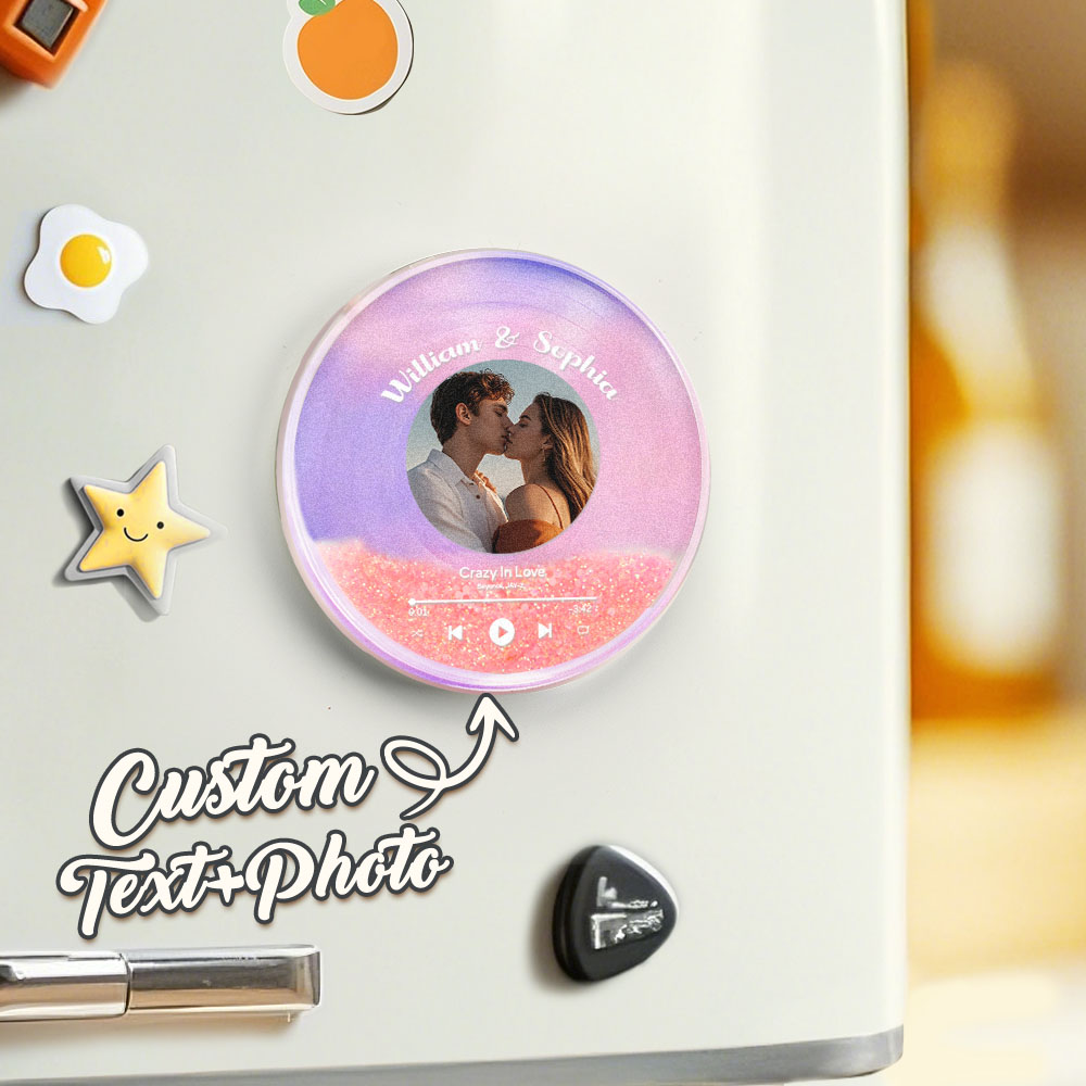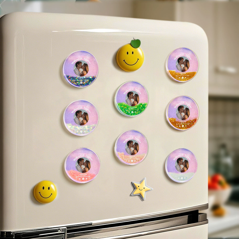 Benutzerdefinierter Runder Kühlschrankmagnet Mit Treibsand-motiv, Personalisierter Kühlschrankmagnet Mit Foto Für Paare