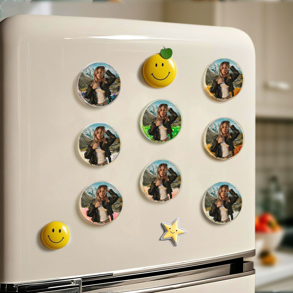 Benutzerdefinierter Runder Quicksand-kühlschrankmagnet, Personalisierter Foto-kühlschrankmagnet Für Sie