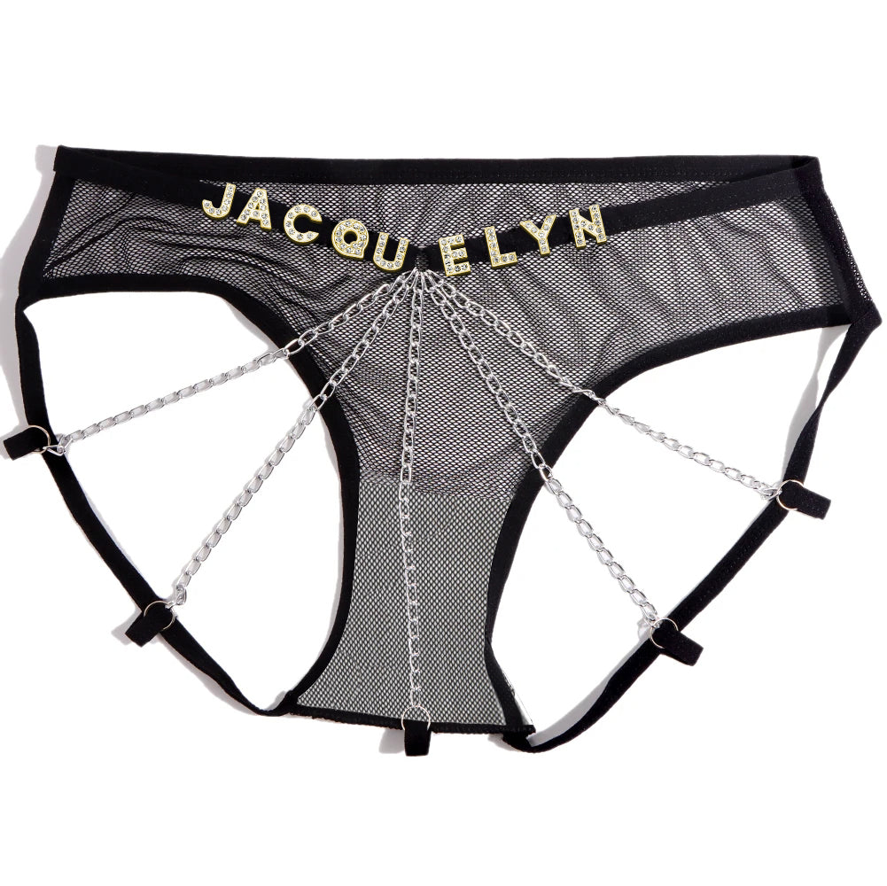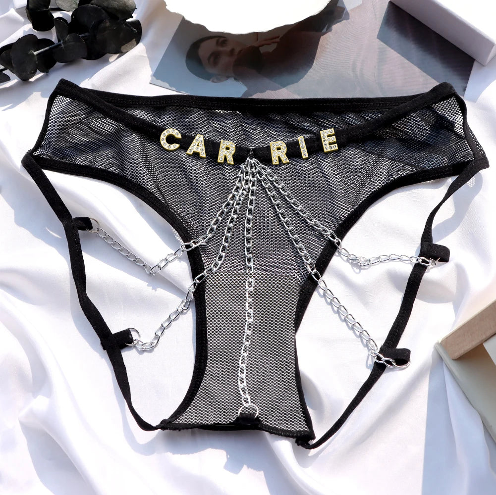 Benutzerdefinierte Sexy Tangas Mit Schmuck, Kristall, Buchstabe, Name, Damenunterwäsche, Geschenk Für Sie