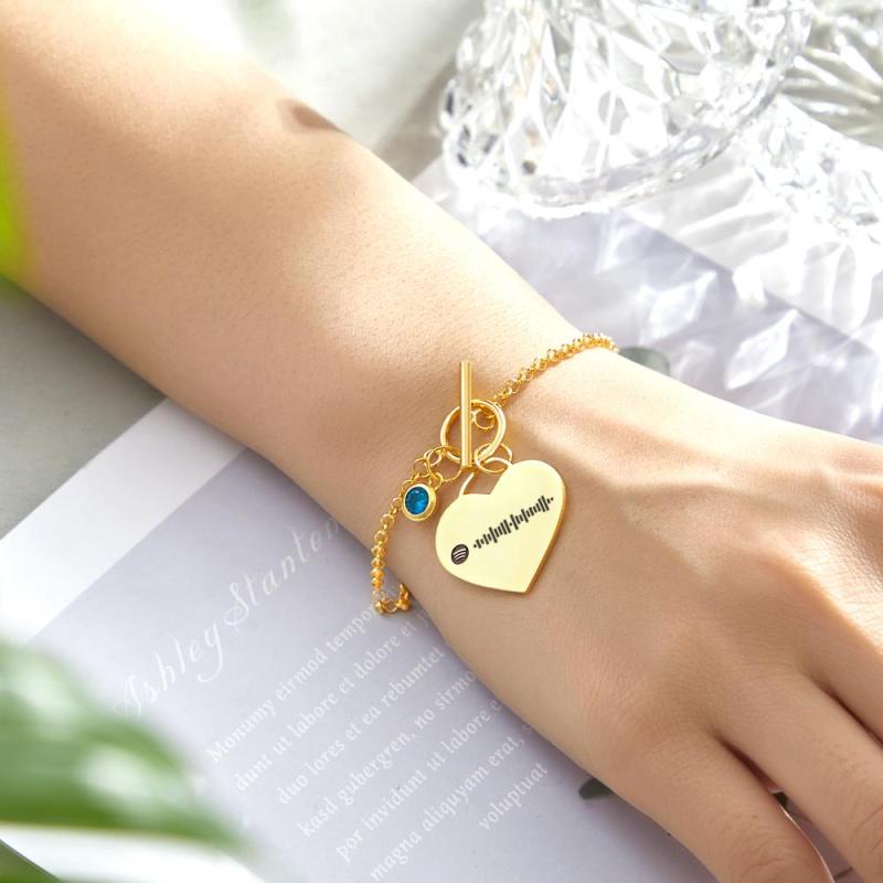 Benutzerdefiniertes Spotify-code-herzarmband Mit Geburtsstein Kreatives Geschenk Für Frauen