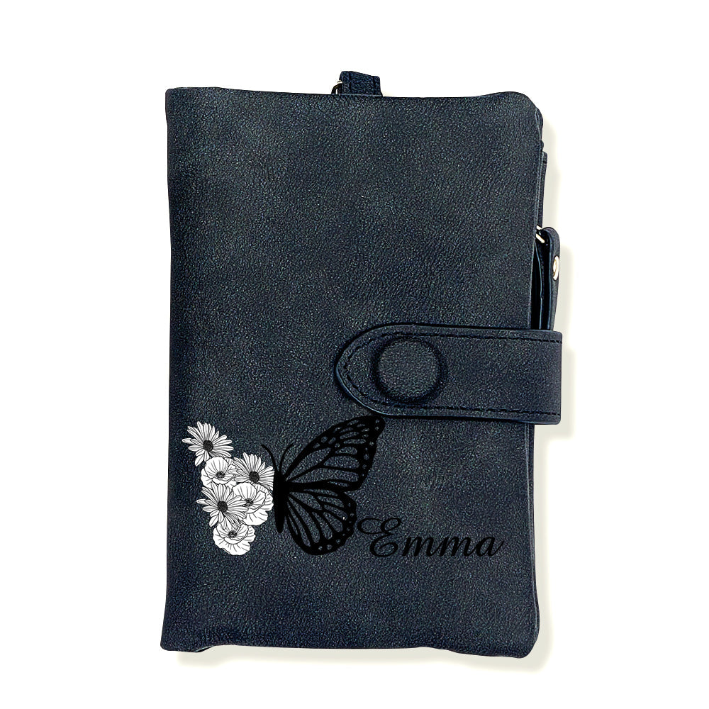 - Einzigartiges Schmetterlings-Geburtsblumen-Design: Dies ist eine einfache und einzigartige Brieftasche, die mit der Geburtsblume und dem Namen des Empfängers individuell gestaltet werden kann. Sie können 1–6 Geburtsblumen zur individuellen Gestaltung auswählen. Wir kombinieren die Geburtsblume und den Schmetterling, was ihr eine unverwechselbare und persönliche Note verleiht und sie zu einem bedeutungsvollen und geschätzten Geschenk macht.