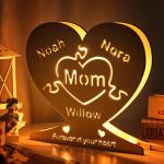 Muttertagsgeschenke, Individuelle Herzförmige Holzlampe, Personalisierter Buchstabe, Name