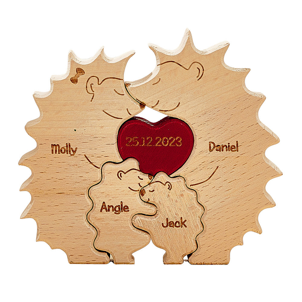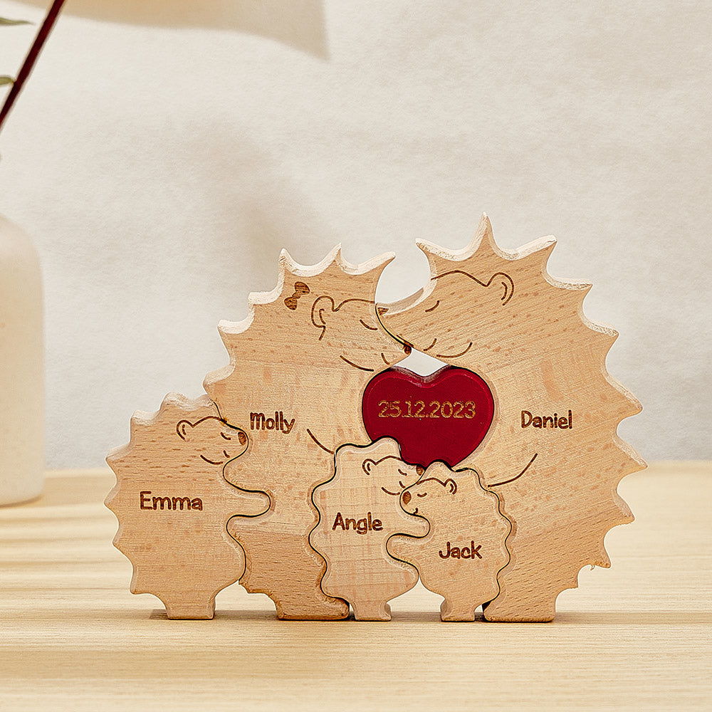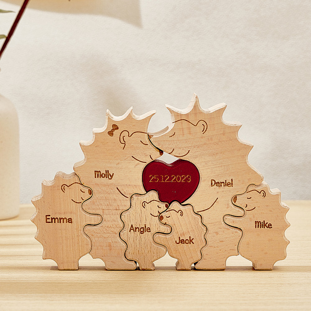 Erinnern Sie sich an die einzigartige Verbundenheit und die wertvollen Erinnerungen Ihrer Familie mit unserem personalisierten, maßgeschneiderten Kunstpuzzle aus Holz in Igelform. Mit diesem aufmerksamen Geschenk können Sie die Namen jedes Familienmitglieds anzeigen und so ein besonderes und bedeutungsvolles Andenken schaffen, das die Reise Ihrer Familie feiert.