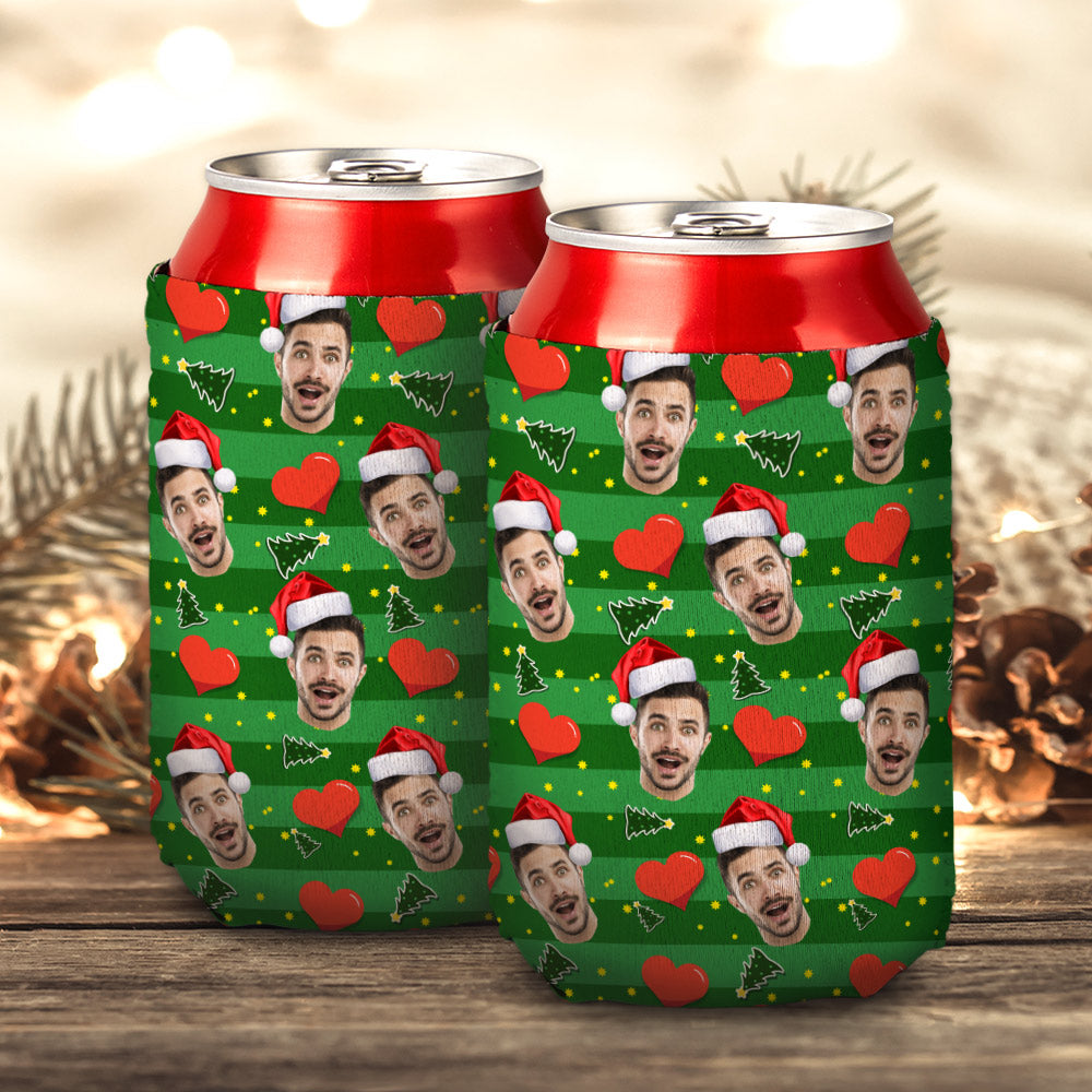 Custom Your Face Weihnachten Isolierter Dosenkühler Herz Koozie Holiday Party Weihnachtsgeschenk