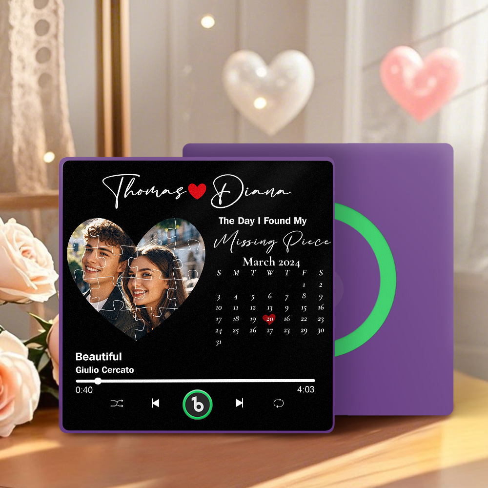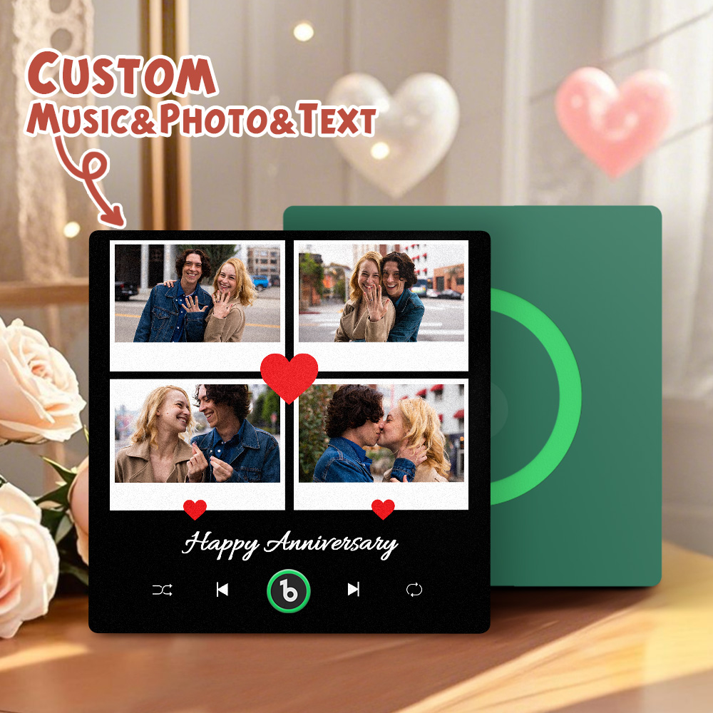Personalisierter romantischer Kühlschrankmagnet mit Musik – Das perfekte GeschenkErwecken Sie Ihre Lieblingsmusik zum Leben mit unserem personalisierten Album-Kühlschrankmagneten! Dieser innovative Magnet ist mehr als nur ein Deko-Objekt; er ist ein funktionales, interaktives Gerät, mit dem Sie Ihre Lieblingssongs direkt von Ihrem Kühlschrank abspielen können. Ob Sie beim Kochen eine entspannende Playlist hören oder beim Snacken Ihre Lieblingsmusik genießen möchten – mit diesem Kühlschrankmagneten ist alles möglich.