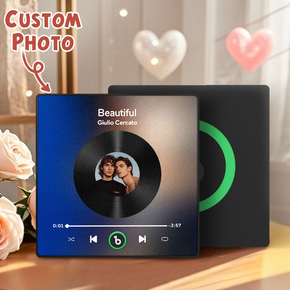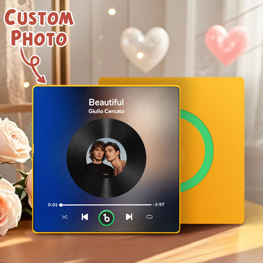Erwecken Sie Ihre Lieblingsmusik zum Leben mit unserem Album-Kühlschrankmagneten nach Maß! Dieser innovative Magnet ist mehr als nur ein dekoratives Stück; es ist ein funktionelles, interaktives Gerät, mit dem Sie Ihre Lieblingssongs direkt von Ihrem Kühlschrank abspielen können. Egal, ob Sie beim Kochen eine entspannende Playlist hören oder Ihre Lieblingsmusik bei einem kleinen Snack genießen möchten, dieser Kühlschrankmagnet macht es möglich.