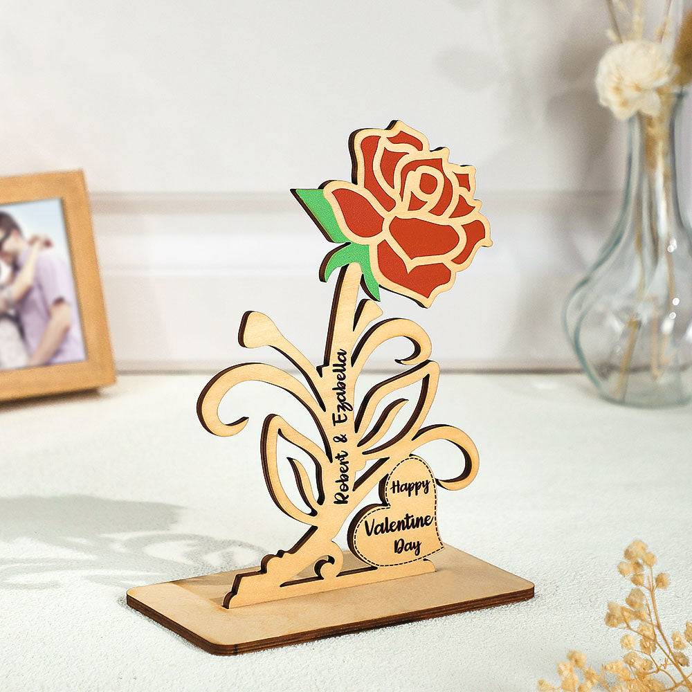 Gravierbares Rosen-holzdekor, Personalisierte Romantische Blumen-valentinstagsgeschenke