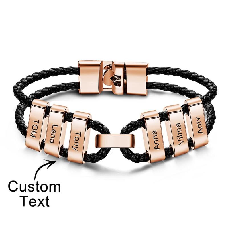 Graviertes Perlen Lederarmband Individuelles Buchstaben Namensarmband Vatertagsgeschenk