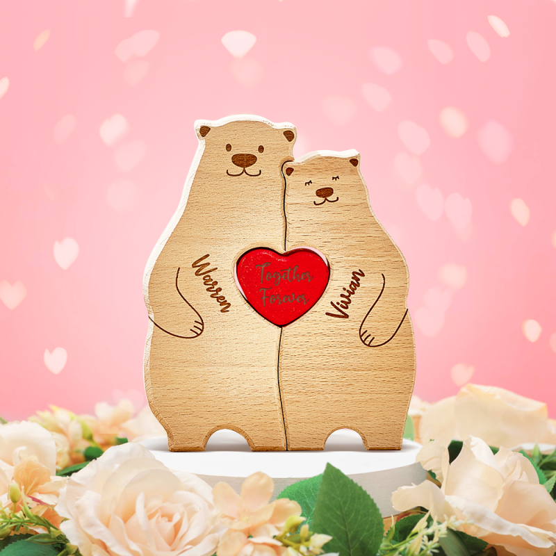 Geschenke zum Valentinstag Personalisierte Holzbären, Individuelle Familienmitgliedernamen, Puzzle, Heimdekoration, Geschenke