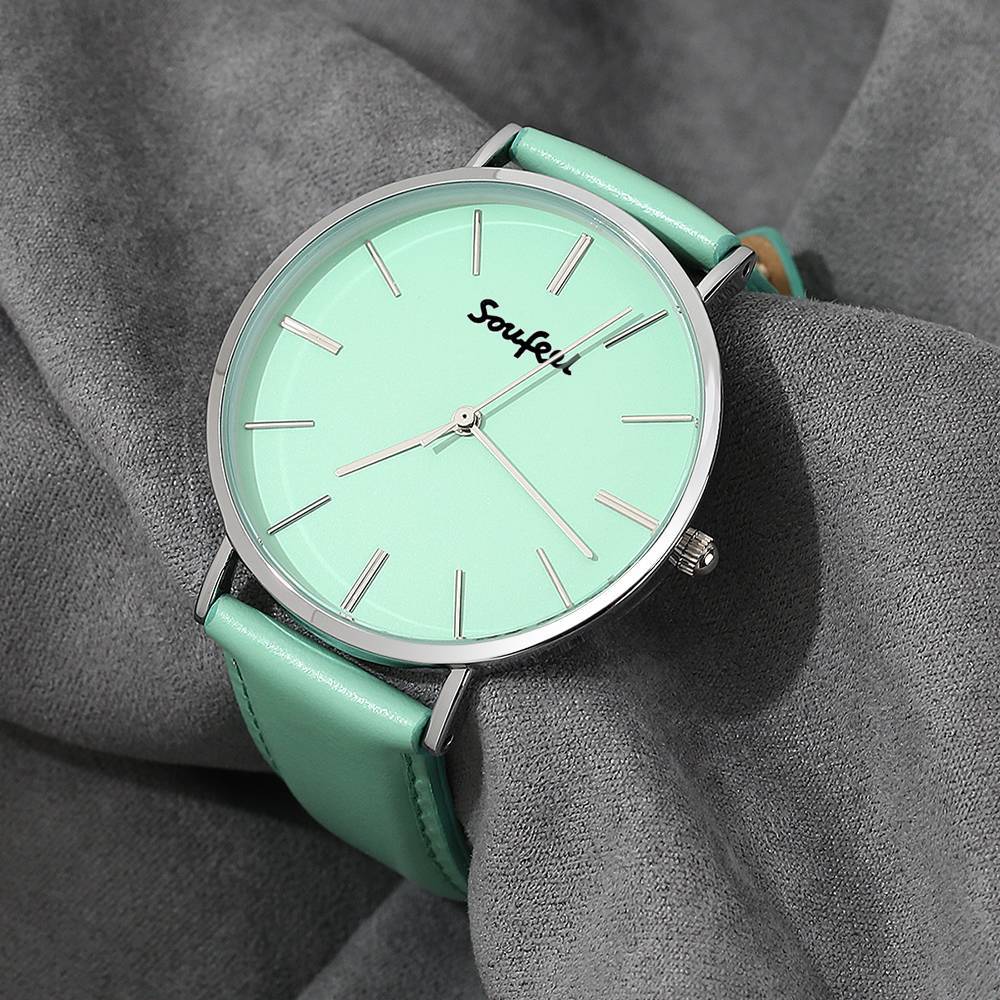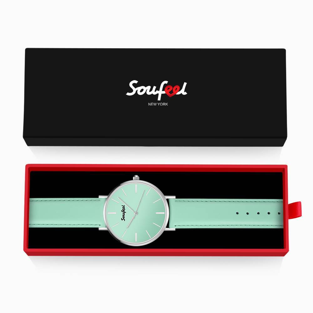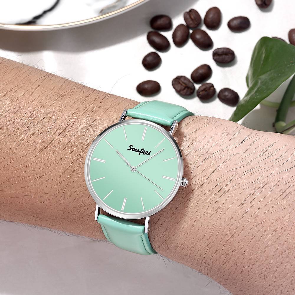 Unisex Classic Watch Hellgrünes Lederarmband 40mm