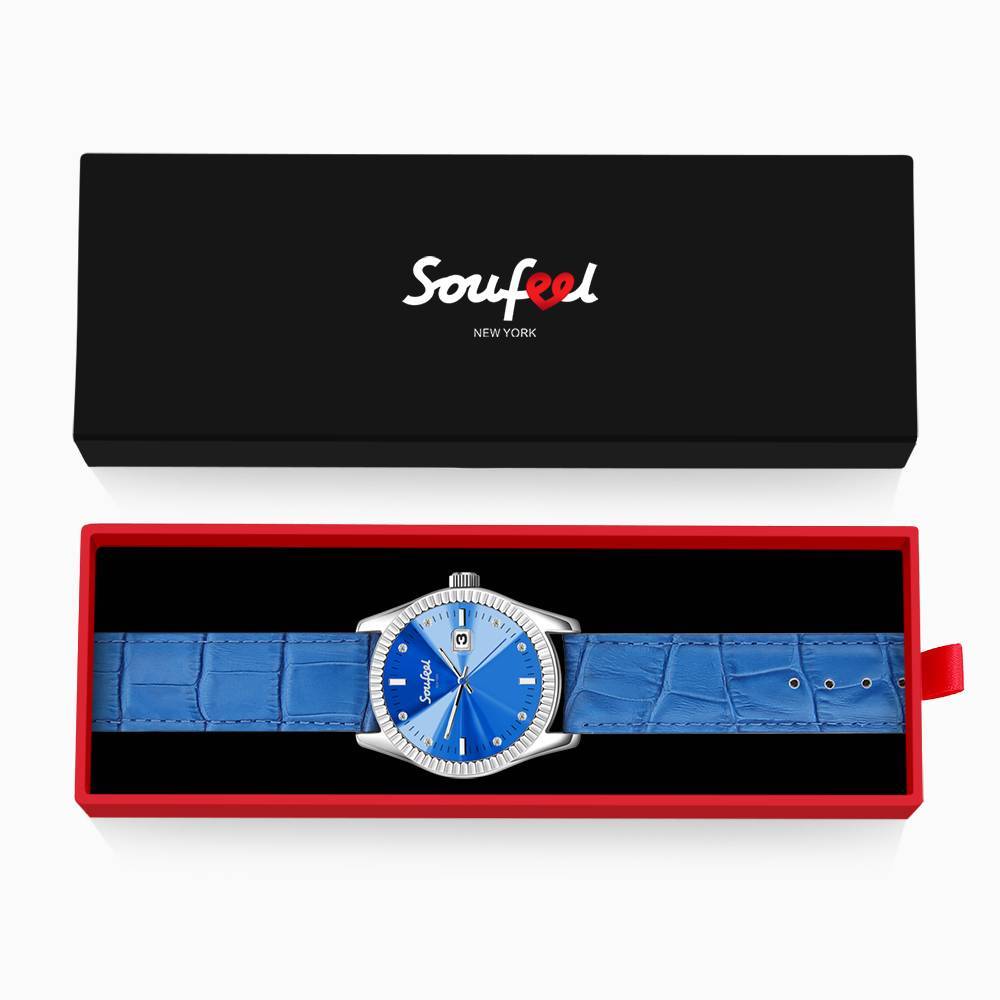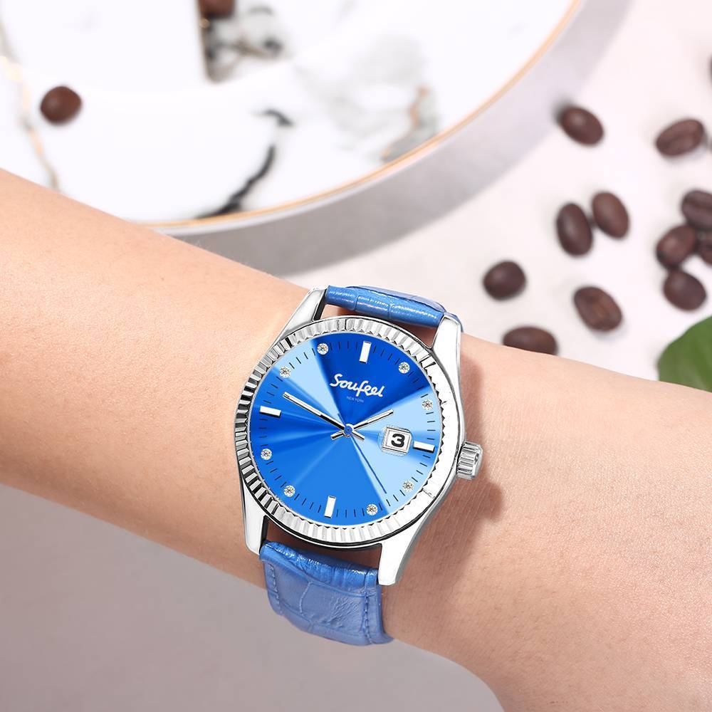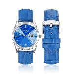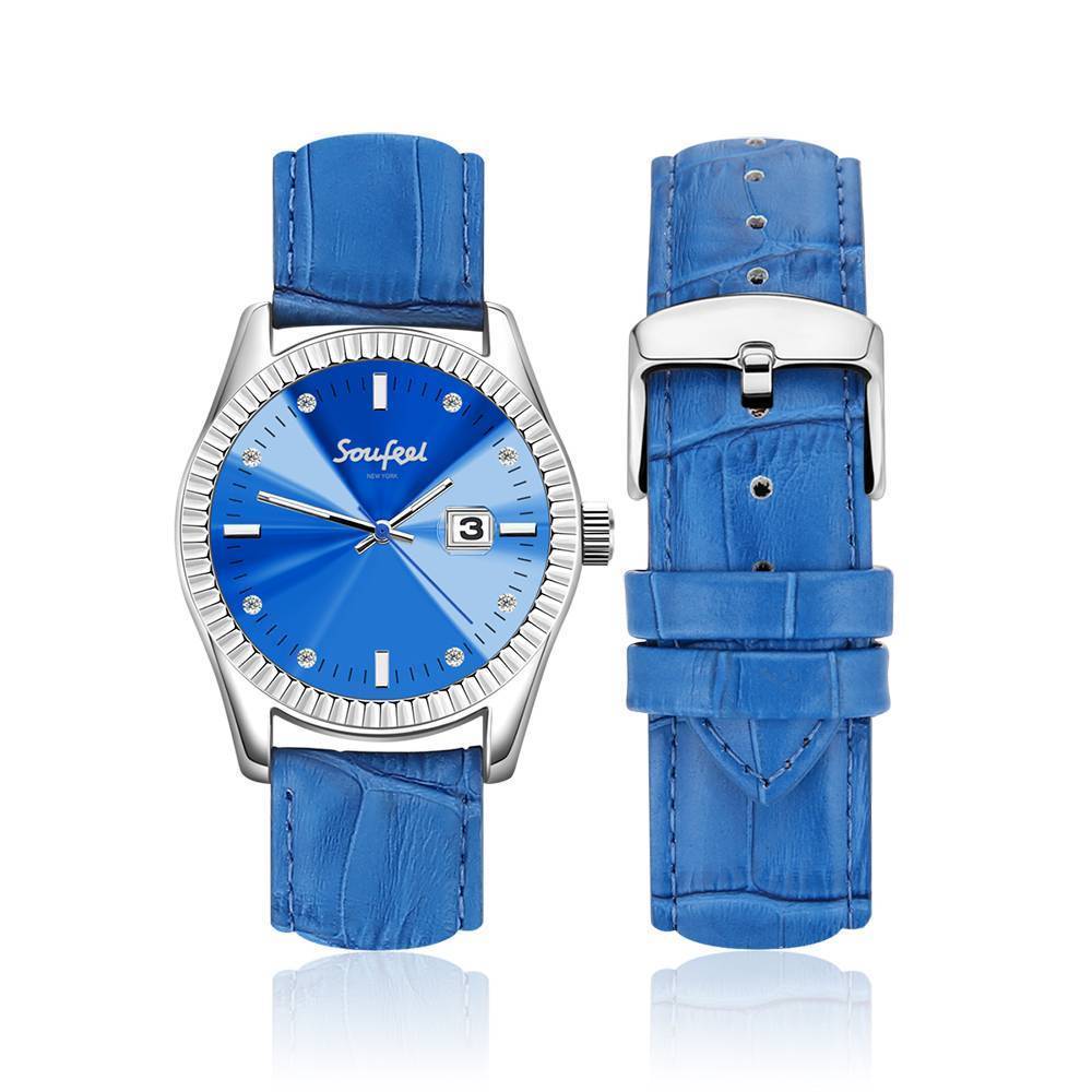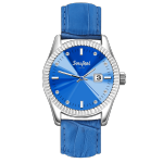 Damenuhr Mit Swarovski-kristallen, Blaues Lederarmband, 38,5 Mm