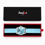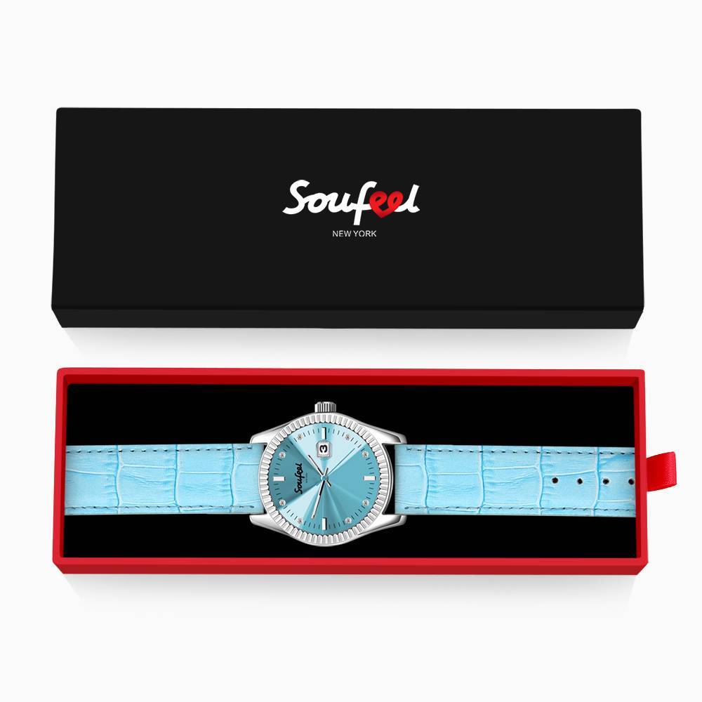 Damenuhr Mit Swarovski-kristallen, Hellblaues Lederarmband, 38,5 Mm