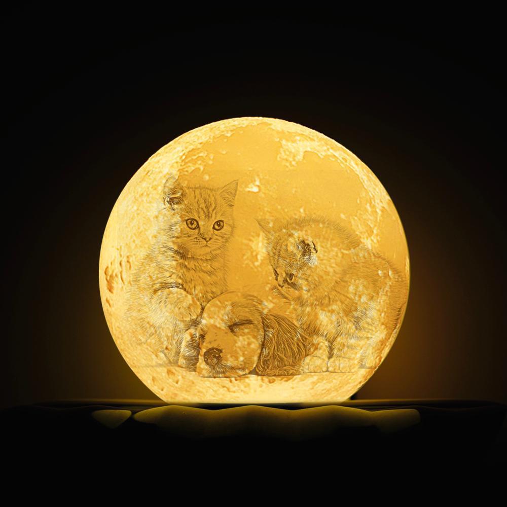 Haustier Beileidsgeschenke Mondlampe mit Foto - Tippen drei Farben
