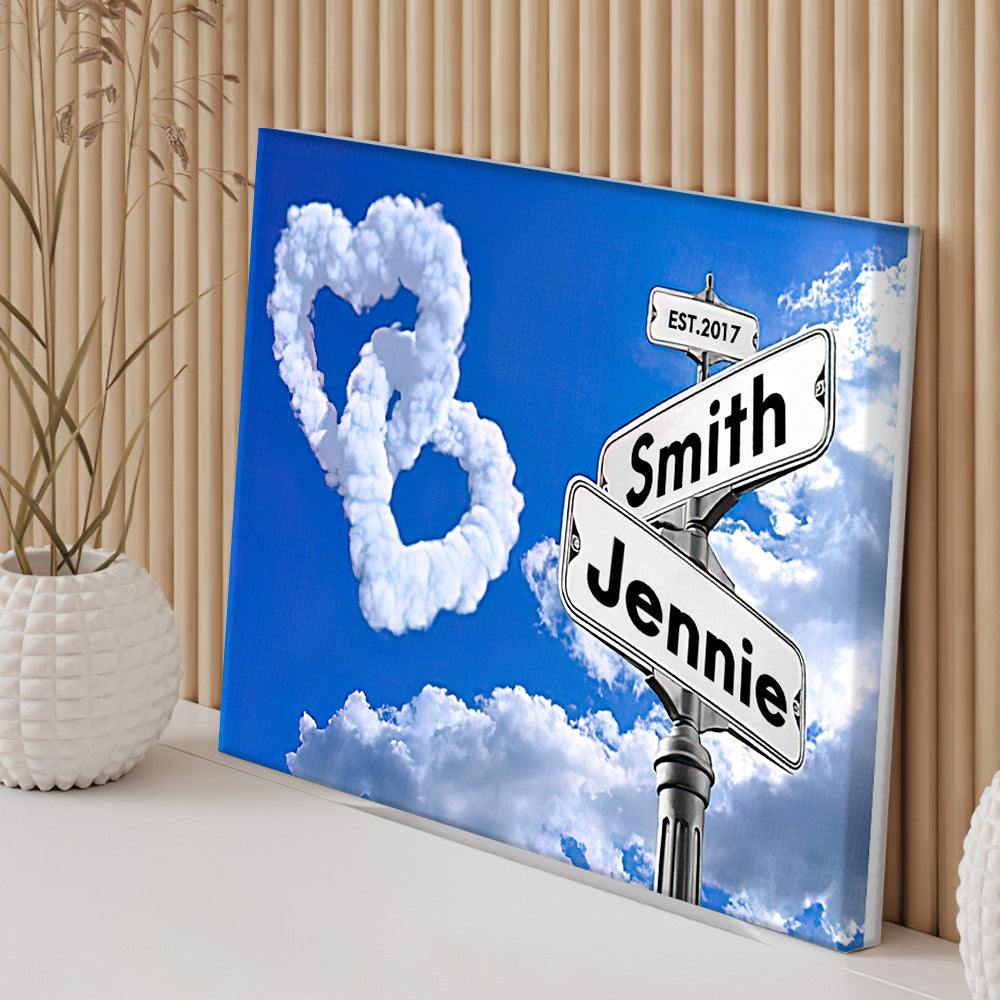 Herzförmige Wolken Himmel Personalisierte Name Straßenschild Leinwand Mit Diy Rahmen Kreuzung Kunst Leinwand Malerei Valentinstag Geschenke