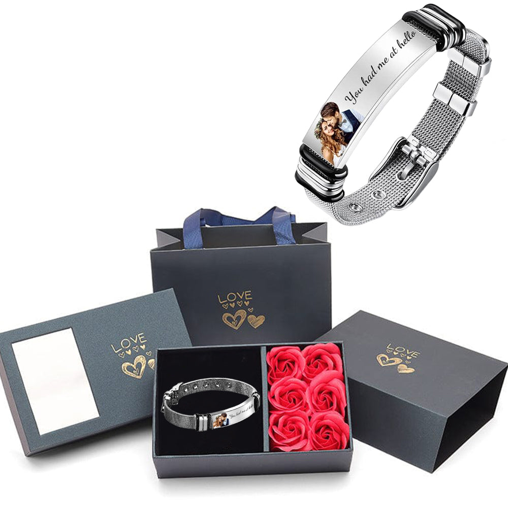 Herren Armband Mit Foto und Gravur Edelstahl Armreif Personalisiertes Hochzeitsgeschenk mit Blumenkasten