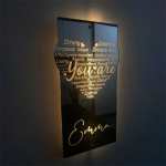 Highlights:This super stylish personalised name mirror with LED lighting is a perfect and unique edition to any youngsters bedroom, they will love lighting up the personalised mirror and seeing their own name in lights.This eye-catching personalised name mirror makes the perfect gift and it will be cherished and loved for many years to come by the recipient.Includes remote control for LED lighting and chrome wall mounting stand offs.Product basic information:What's in the box?Mirror with any name engravedLED lightingAcrylic safety mirror is lightweight and shatterproofRemote ControlWall Mounting Stand OffsMaterials:High quality official acrylic Acrylic safety mirror is lightweight and shatterproof.Product sizes:400mm x 200mm/510mm x 250 mm USB CABLE SIZE 1.5 meters long.This item needs 3-5 business days to handcraft.If you have any further questions about the product, feel free to message me!