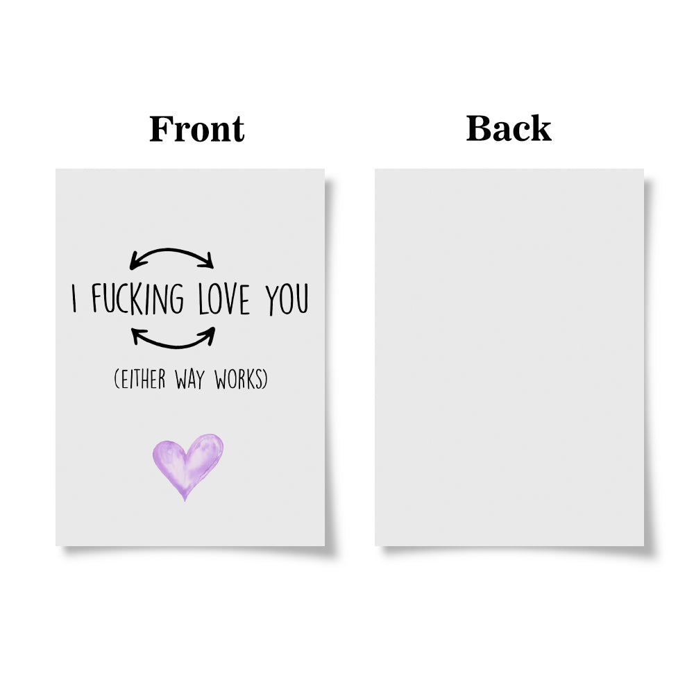 Erklären Sie Ihre Liebe mit einer gewagten Wendung! Unsere urkomische Valentinstagskarte wird Ihren Partner mit Sicherheit zum Lachen bringen und Sie noch mehr lieben lassen. Mit einem kräftigen Ton und einem humorvollen Design ist es die perfekte Möglichkeit, Ihre Gefühle auszudrücken und Ihre Beziehung aufzupeppen. Geben Sie sich nicht mit langweiligen Karten zufrieden, gehen Sie ein Risiko ein und zeigen Sie Ihre Liebe auf unterhaltsame und gewagte Weise!