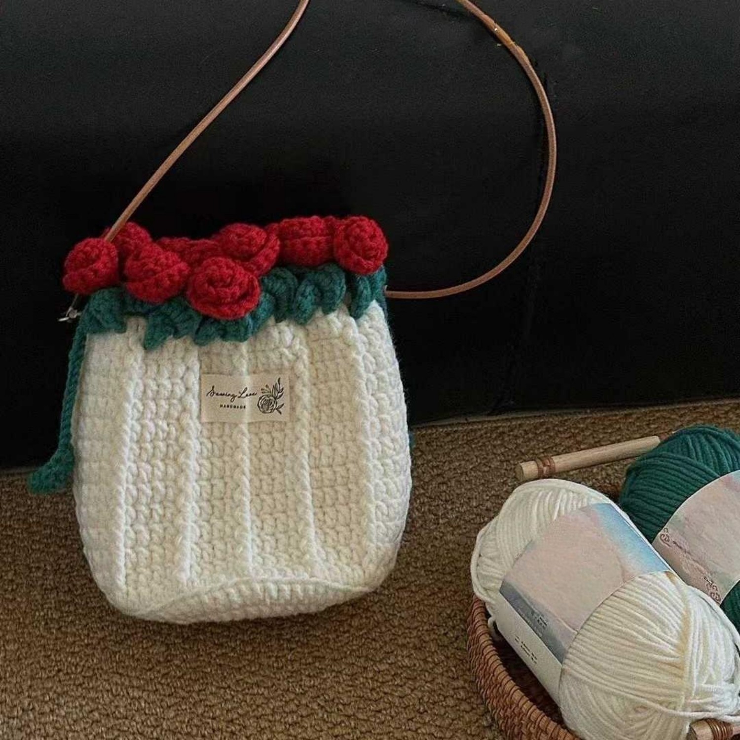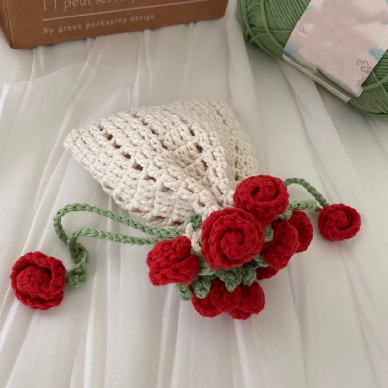 Gestrickter Rosenstrauß-beutel, Gewebter Beutel, Fertiger Handgewebter Blumenstrauß, Geschenk Für Mutter Und Freundin