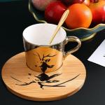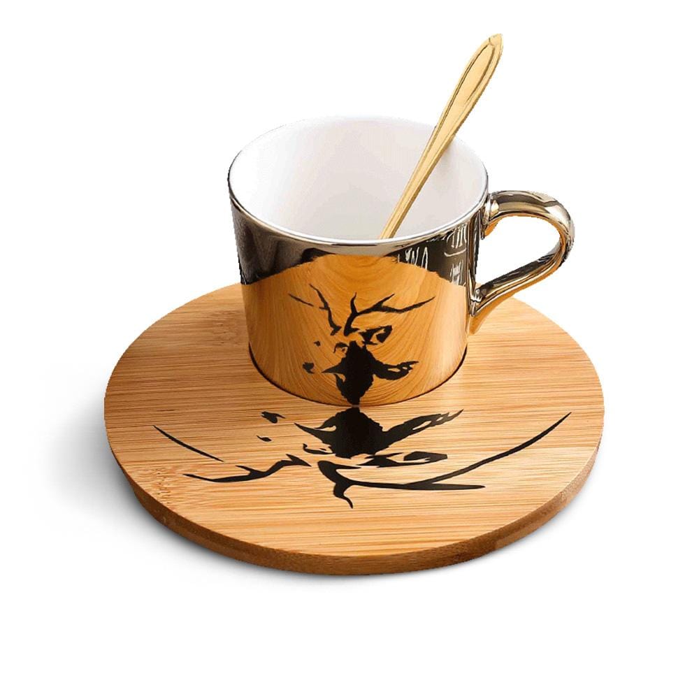 Einzigartiges Spiegelhandwerk, wenn sich die Tasse auf der Untertasse befindet, spiegelt die Oberfläche der Tasse ein interessantes Muster wider.