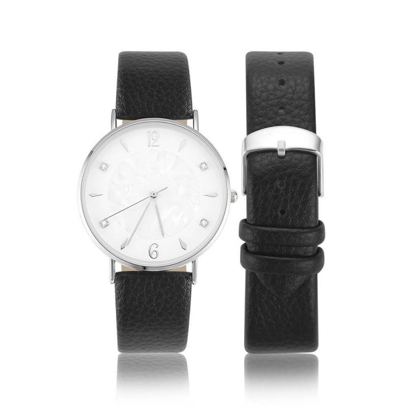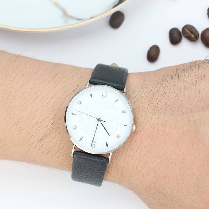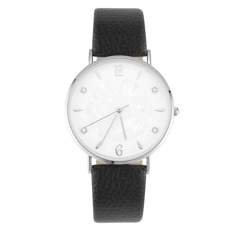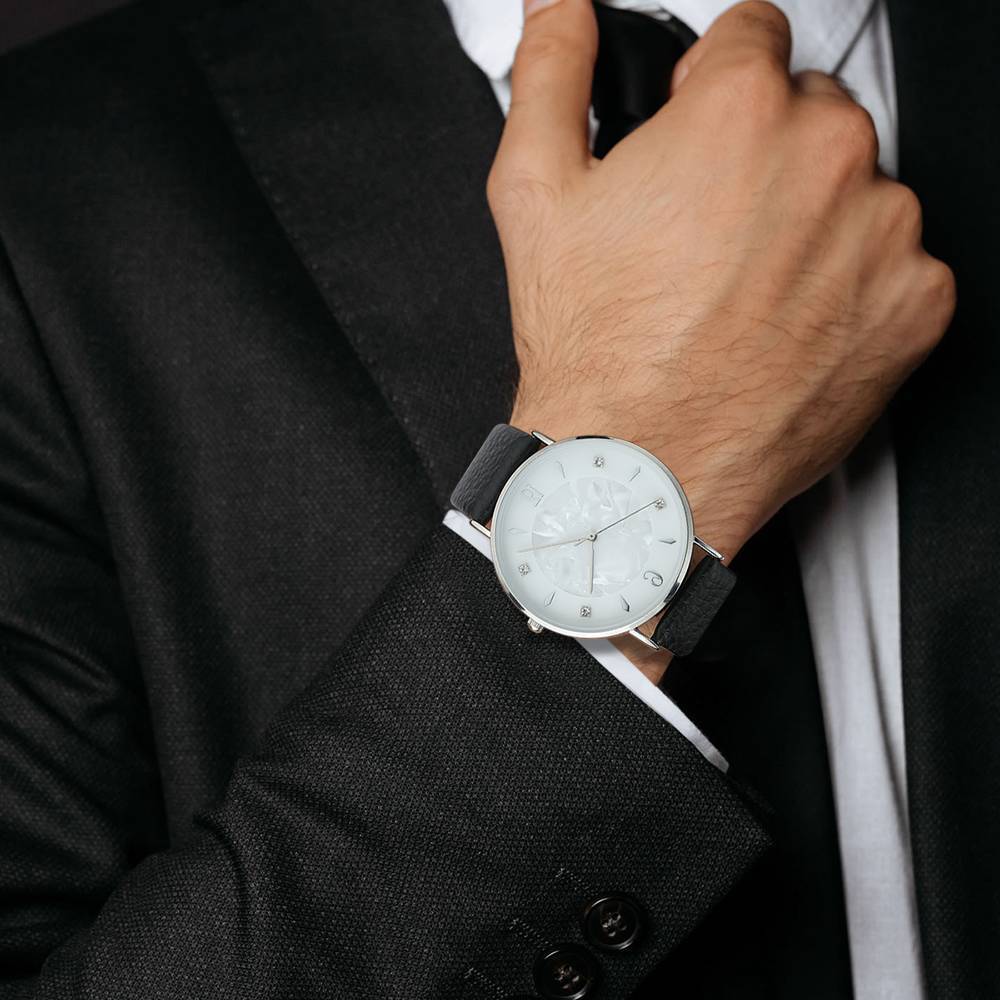 Uhr Mit Marmorzifferblatt, Schwarzes Lederarmband – Herren