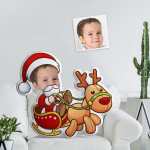 Mein Gesicht Kissen Santa Witzig für Kinder Minime Wurfkissen Personalisiertes Baby fährt auf einer Weihnachtskutsche