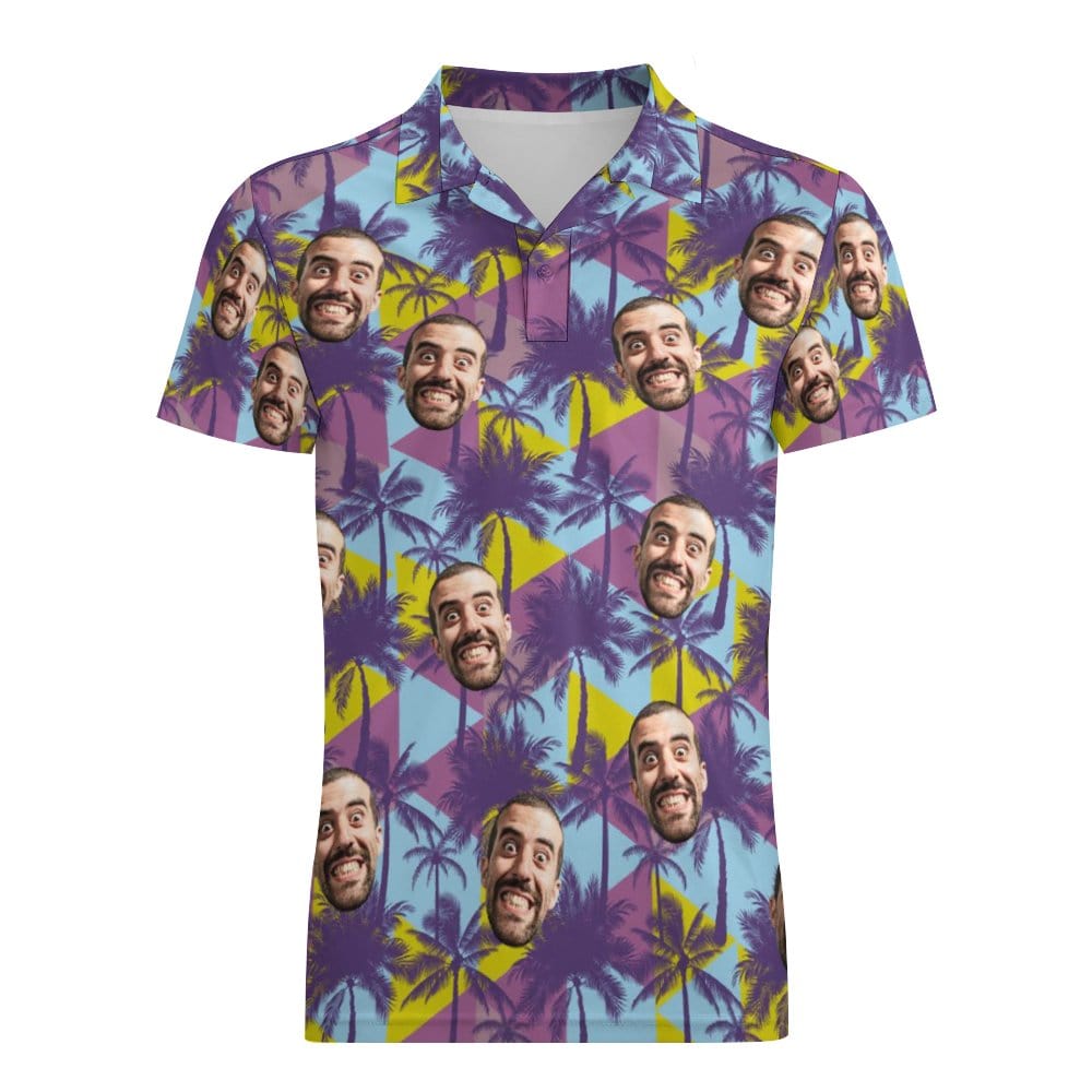 Herren-poloshirt Mit Individuellem Gesicht, Bunte Kokosnussbäume, Personalisierte Hawaiianische Golf-shirts