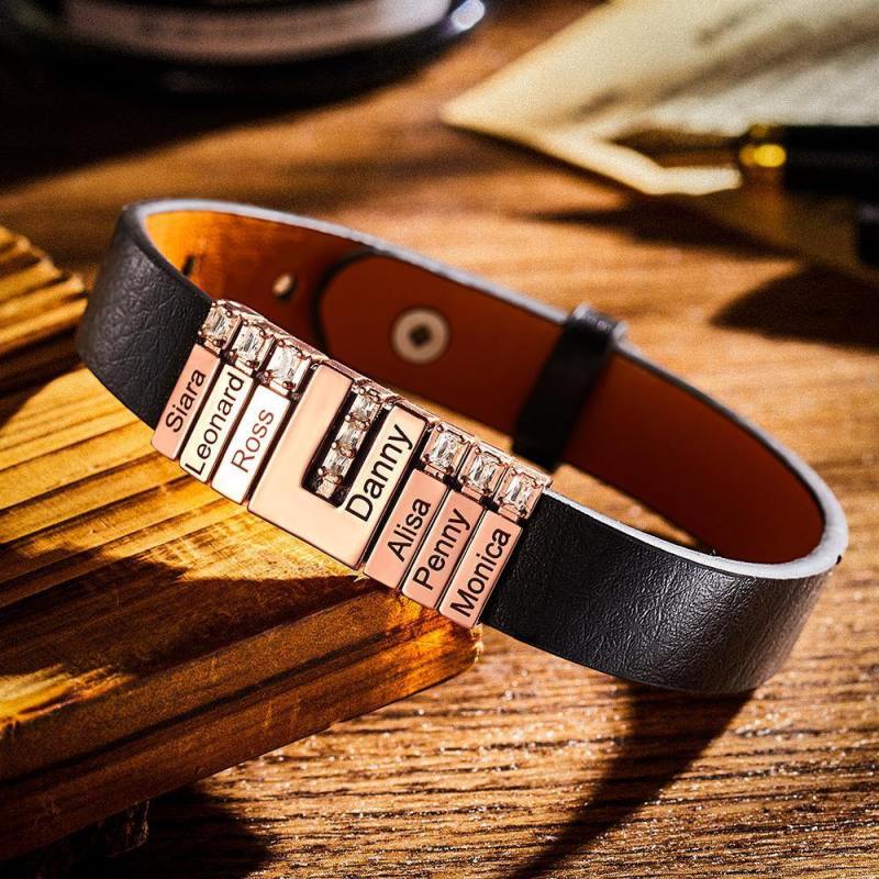 Personalisiertes Herren-Lederarmband mit verstellbaren Diamantperlen perfektes Geschenk zum Vatertag Anti-Oxidations-Edelstahl