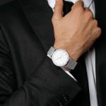 Uhr Mit Mesh-armband Aus Edelstahl, Silbernem Armband Und Weißem Zifferblatt – Herren