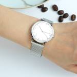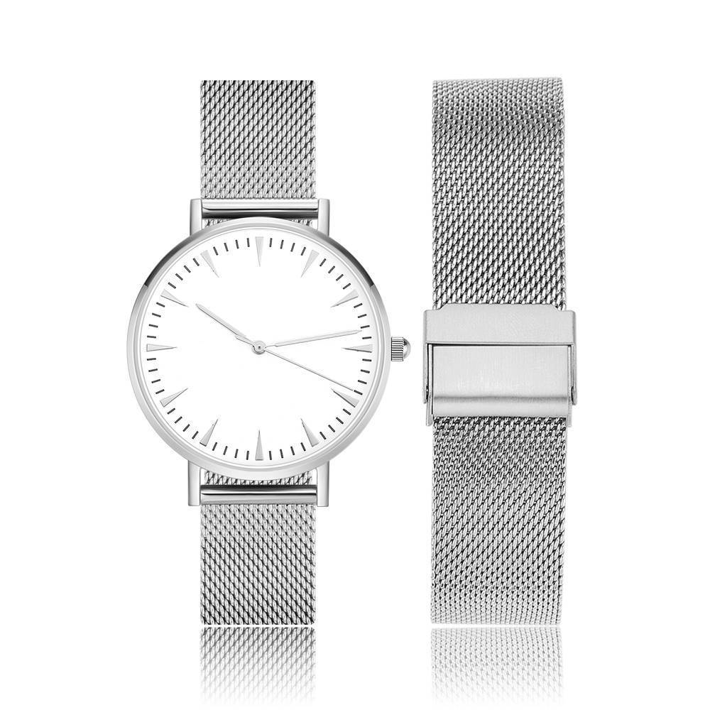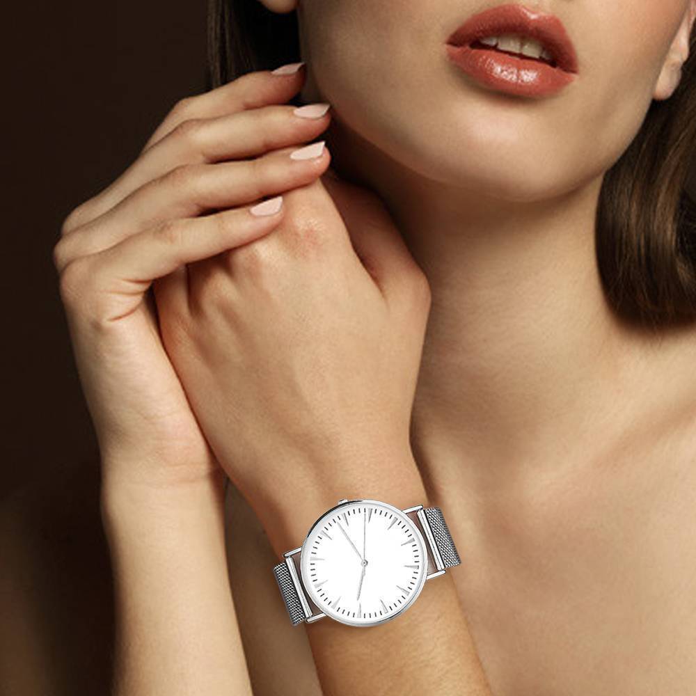 Uhr Mit Mesh-armband Aus Edelstahl, Silbernem Armband Und Weißem Zifferblatt – Damenuhr