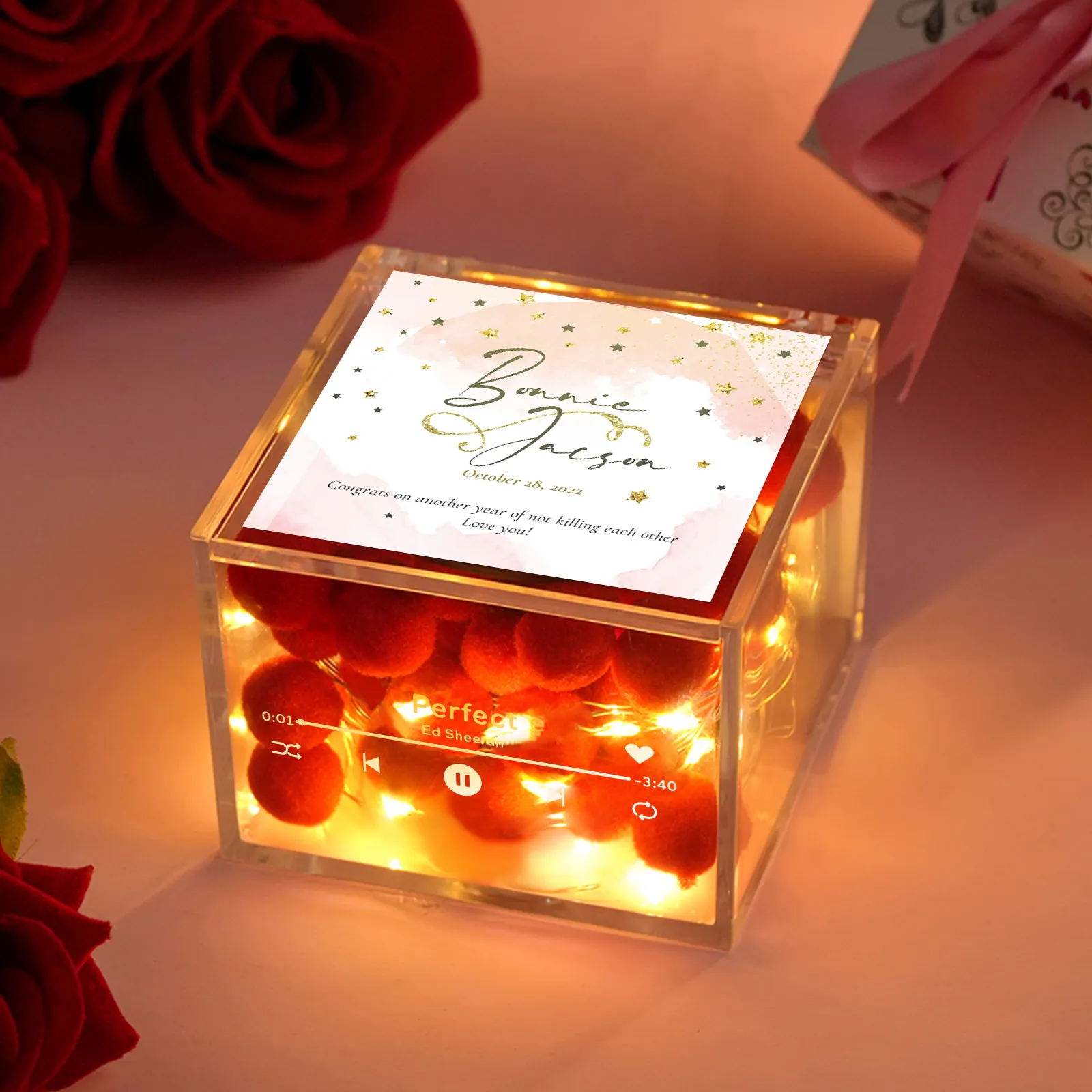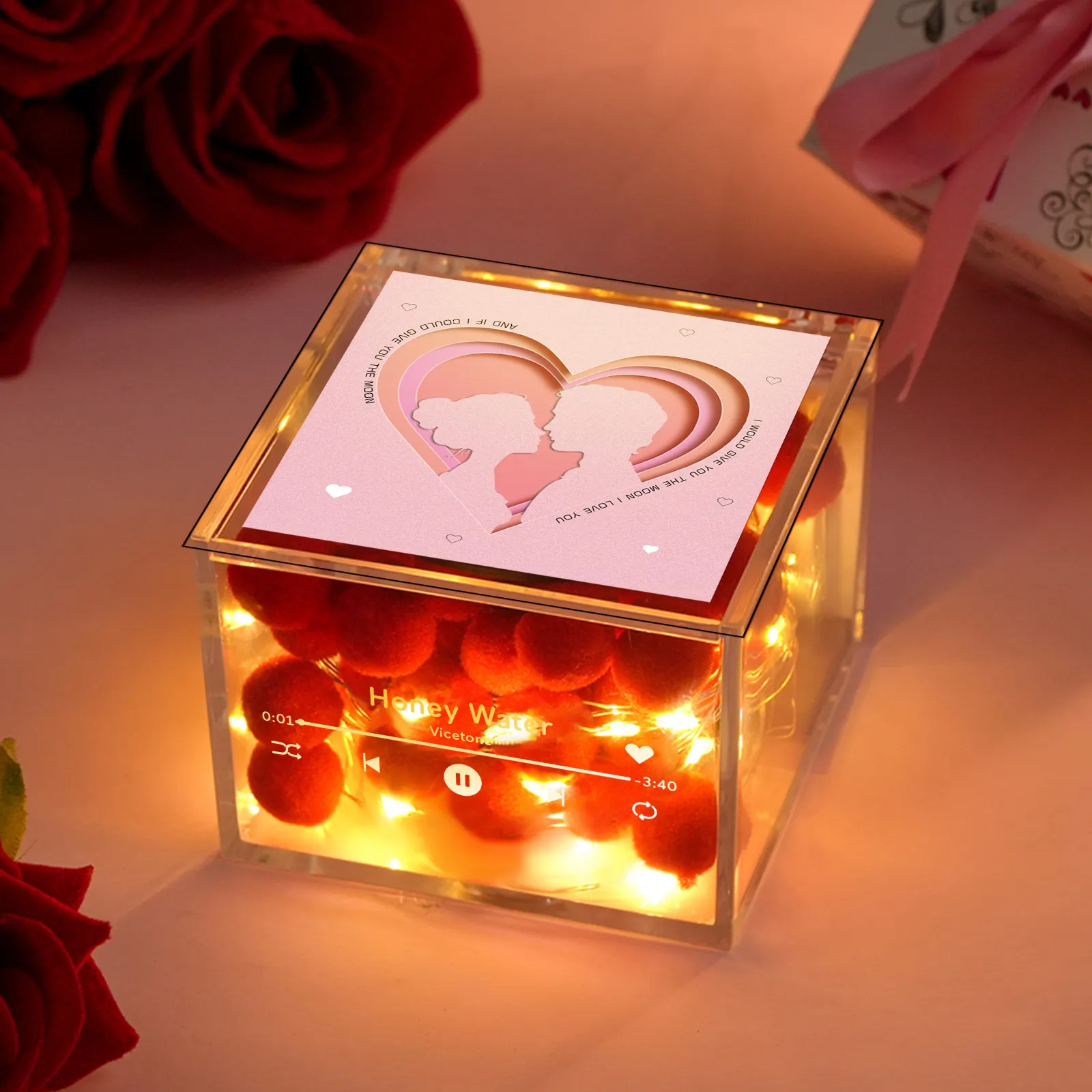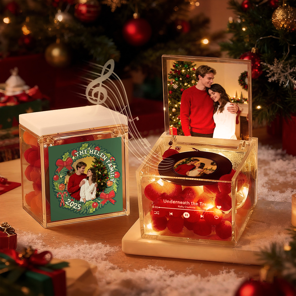 Premium Mini-musikrekorder Mit Automatischem Musikabspieler, Personalisiertem Foto Und Licht, Acrylbox