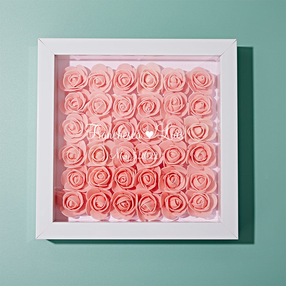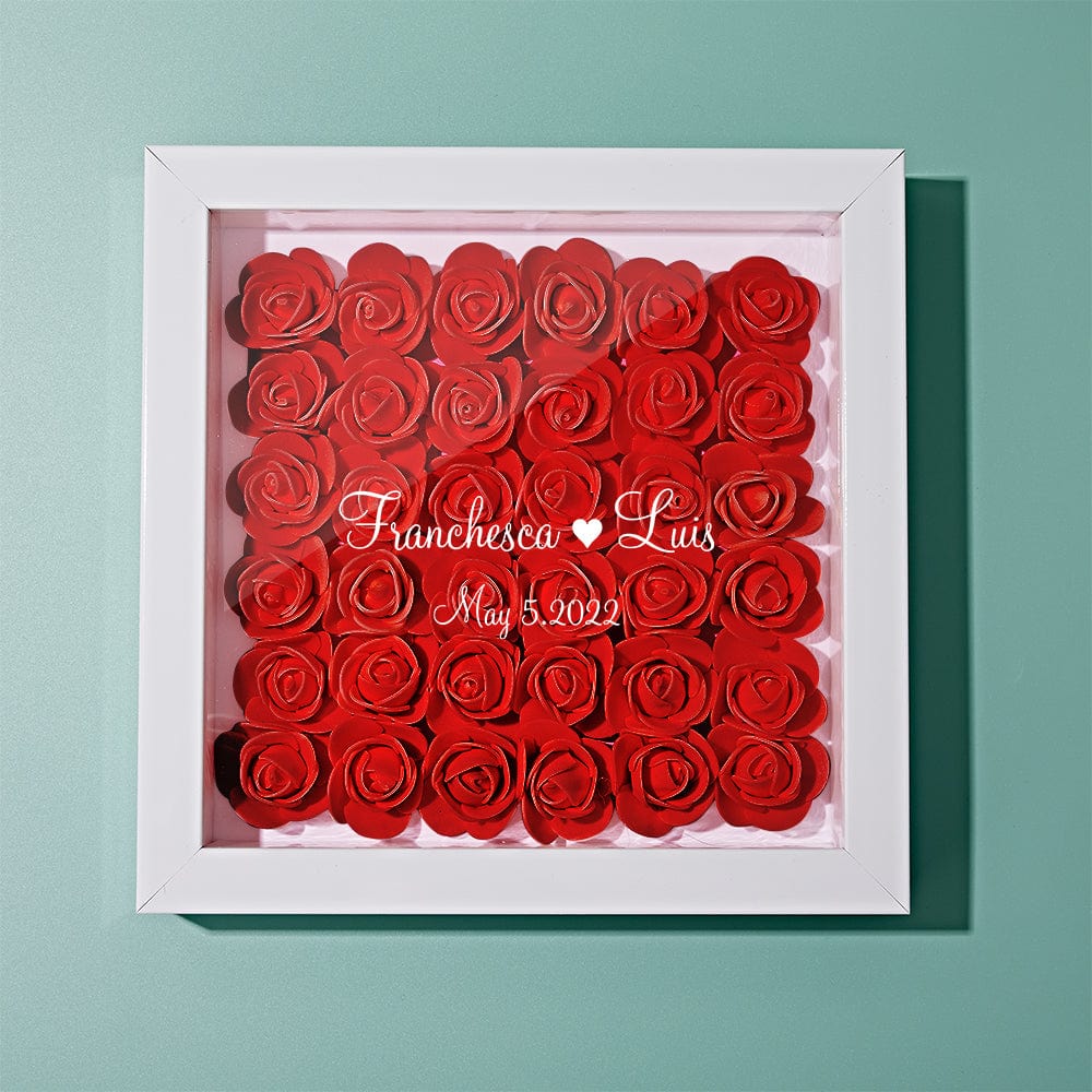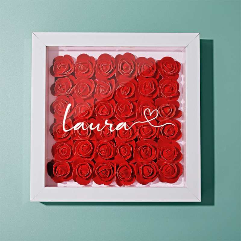 Überraschen Sie Ihre Liebsten mit dieser schönen, personalisierten Blumenschattenbox. Sie können sie mit Ihrem Namen personalisieren, um Ihre besonderen Erinnerungen zu bewahren. Zeigen Sie Ihre Liebe mit unseren schönen Rosen mit verschiedenen Stilen und Farben zur Verfügung.