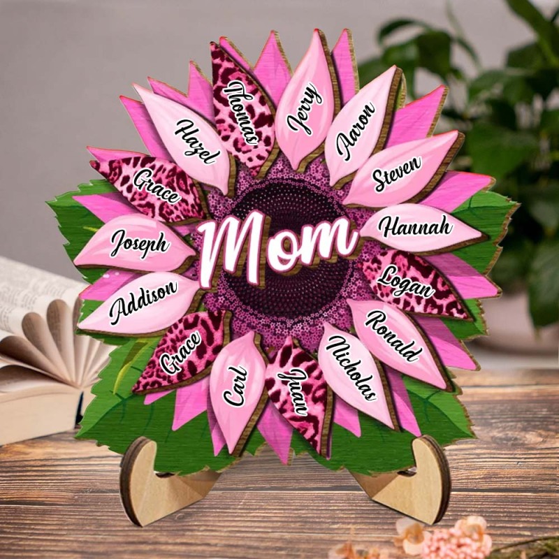 Nana, Mum, Auntie Sunflower - Geburtstag, liebevolles Geschenk für Mama personalisierte 2-ply Holz Plaque mit Stand