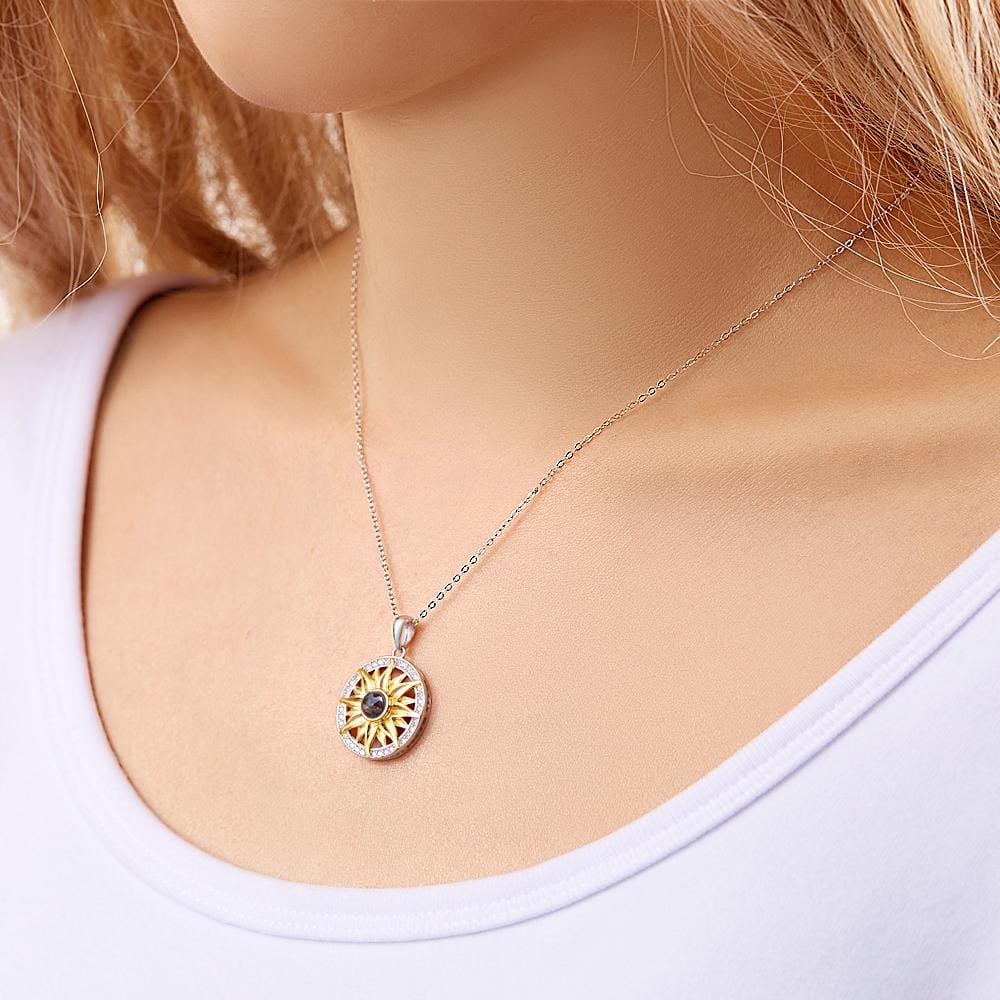 Personalisierte Foto Projektion Halskette Geschenk für Sie-Sonnenblume