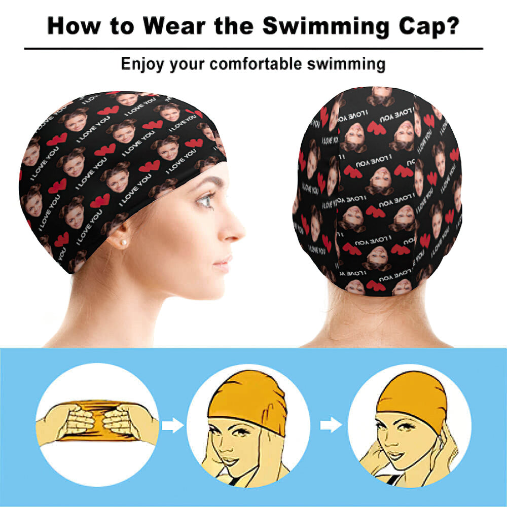 Personalisierte Badekappe mit Gesicht Schwimmkappe Bademütze Valentinstagsgeschenke