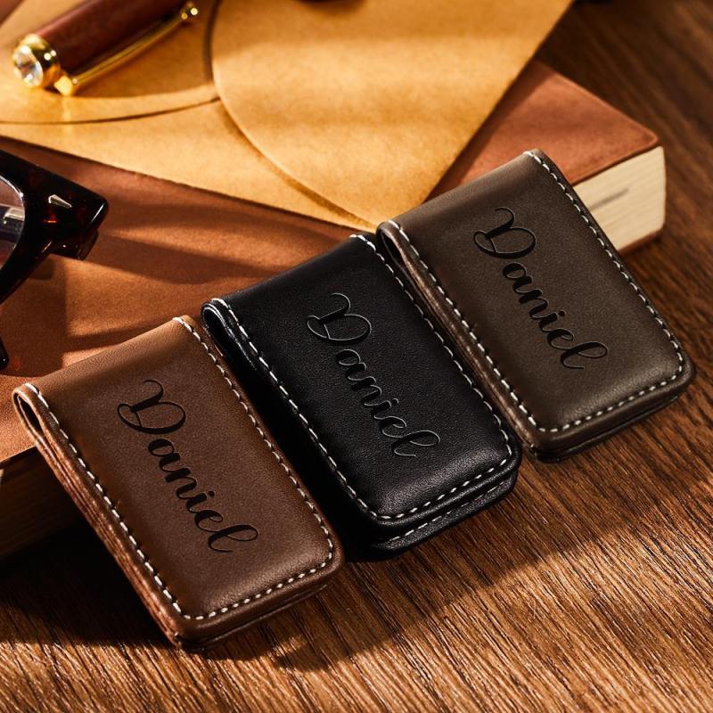 Personalisierte Geldklammer mit Gravur Magnetisch Geldscheinklammer Leder Geschenke für Männer
