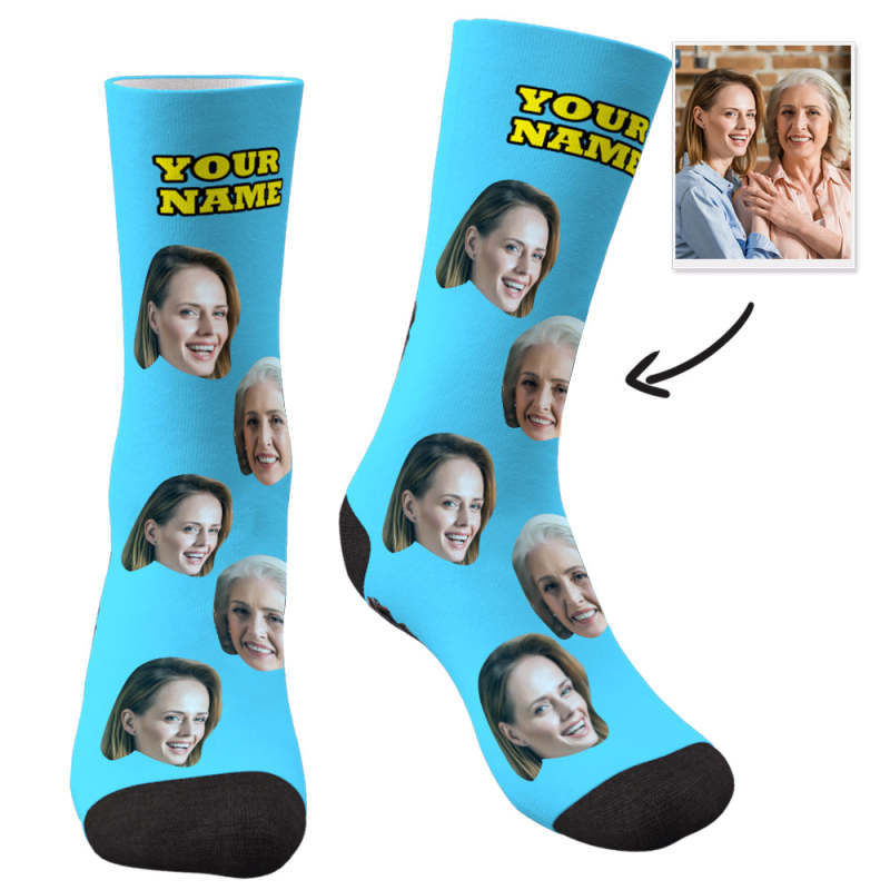 Personalisierte Gesicht Socken mit Ihrem Text 3D-Vorschau Bunte Socken für Mutter