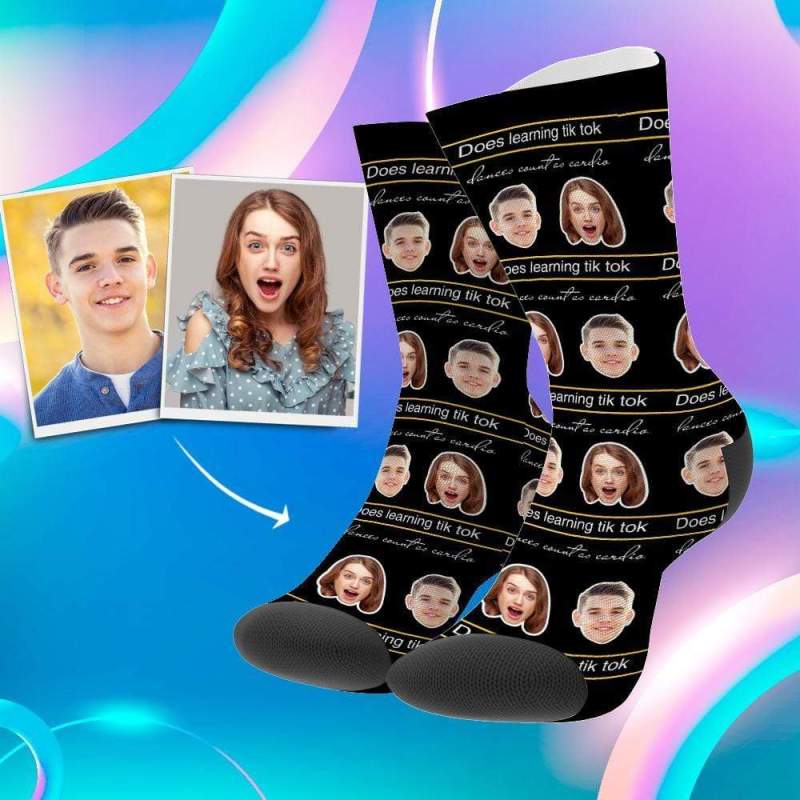 - Fügen Sie den Socken die Gesichter von Freunden oder Familien hinzu. Diese lustigen Socken sind ein tolles Geschenk für Tiktok-Liebhaber.