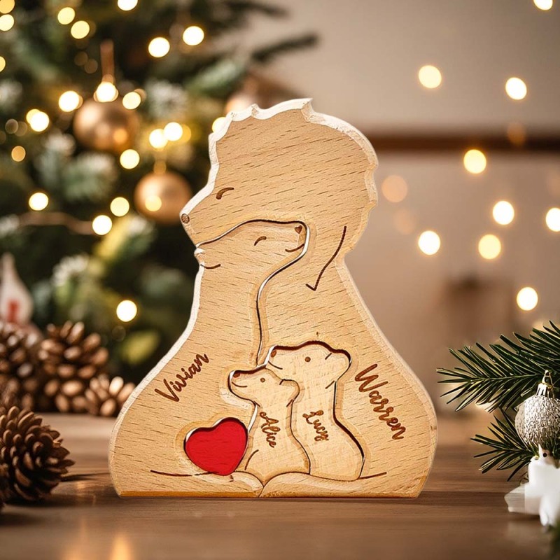 Personalisierte Holzlöwen, Individuelle Familienmitgliedernamen, Puzzle, Heimdekoration, Weihnachtsgeschenke für die Familie