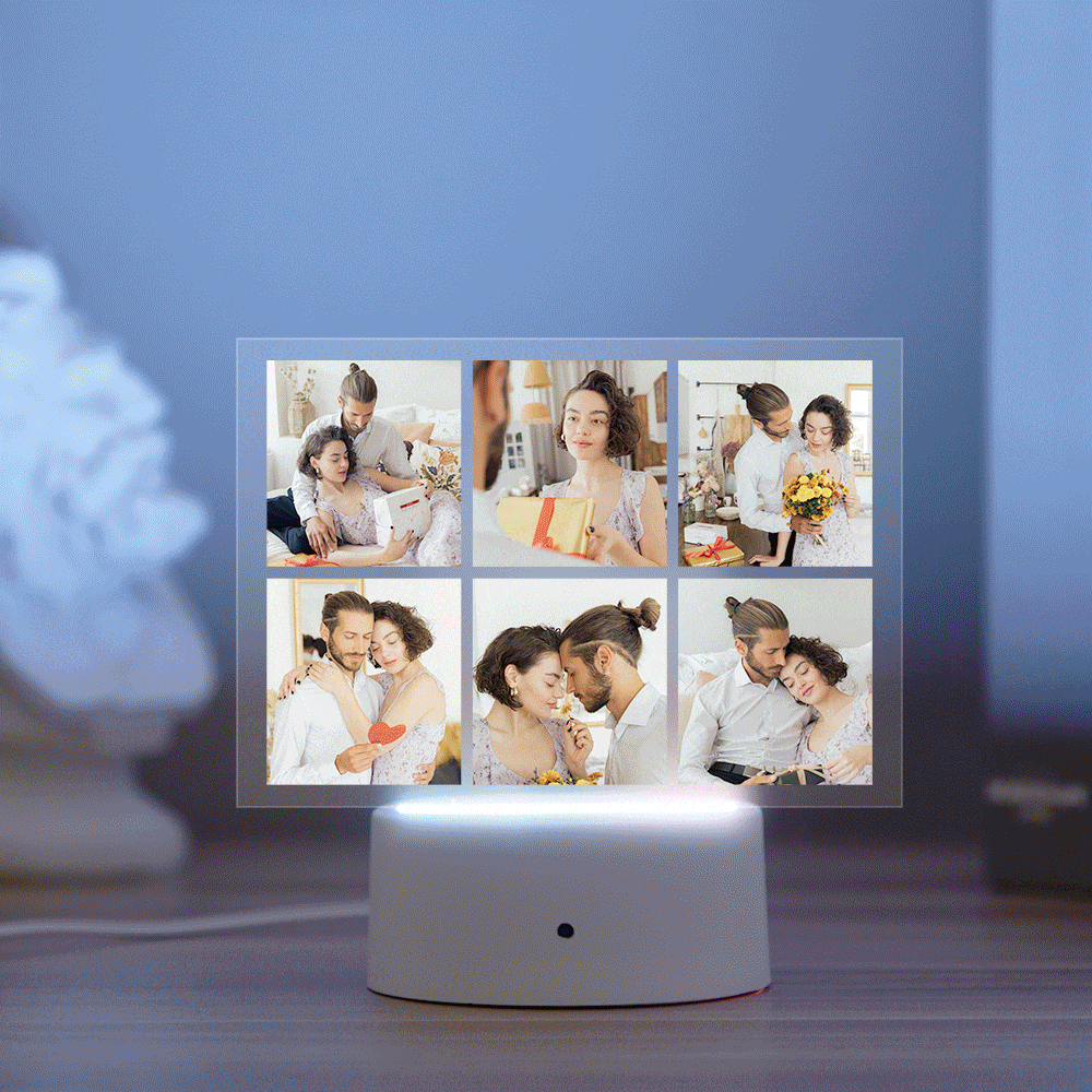 Sie können die gewünschten Fotos hochladen. Halten Sie die glücklichen Erinnerungen an den Hochzeitstag fest. Es ist das perfekte Geschenk für ein Ehepaar. Die Acrylrutsche passt in die Basis, die Licht liefert, um die gesamte Rutsche von unten nach oben zu beleuchten. Stromversorgung über USB-Kabel oder 3 AA-Batterien (nicht im Lieferumfang enthalten). Das Nachtlicht heizt nicht auf und ist sicher für den Raum.
