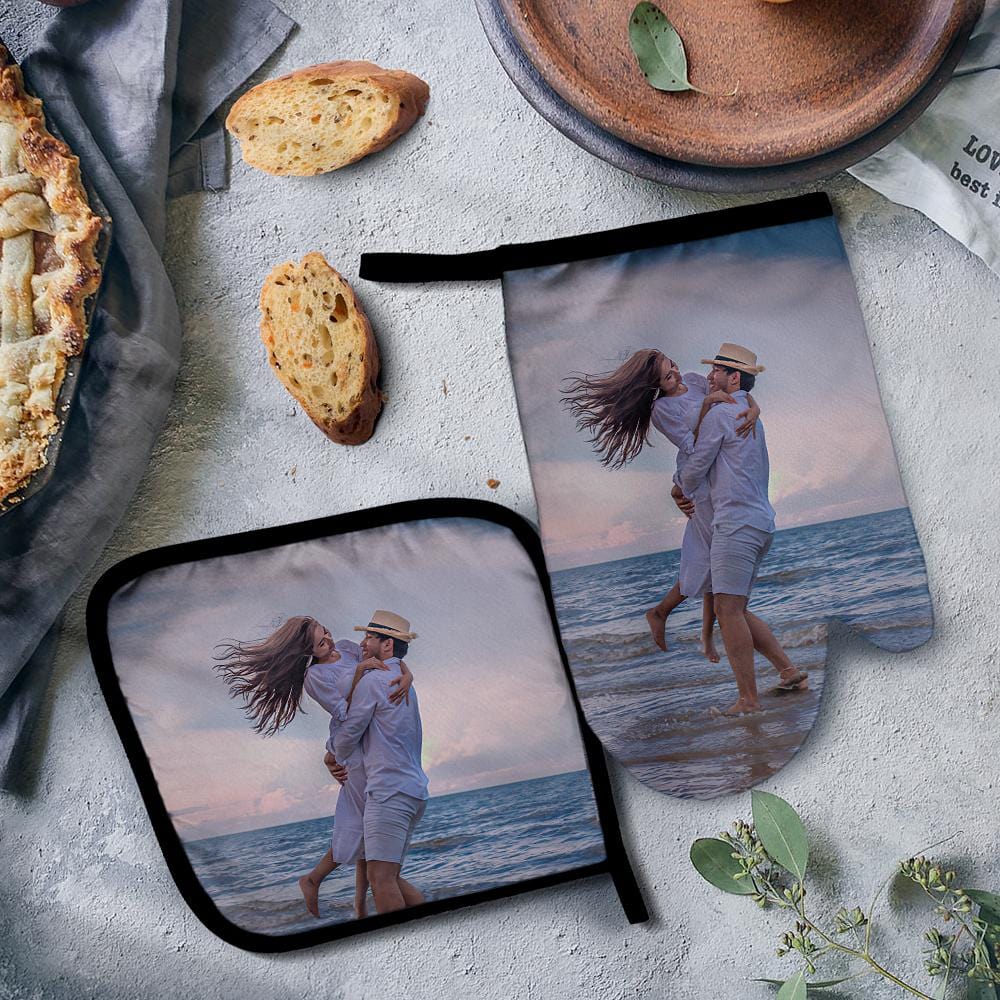Personalisierte Ofenhandschuhe mit Foto Topflappen Set