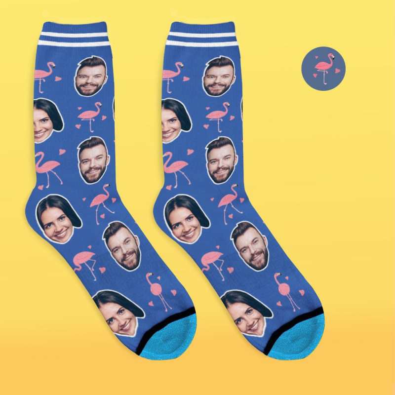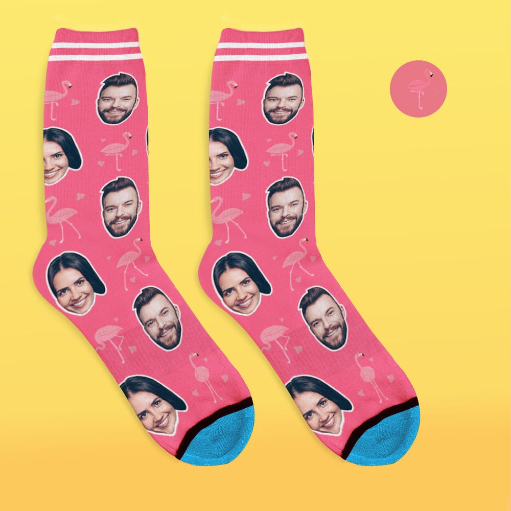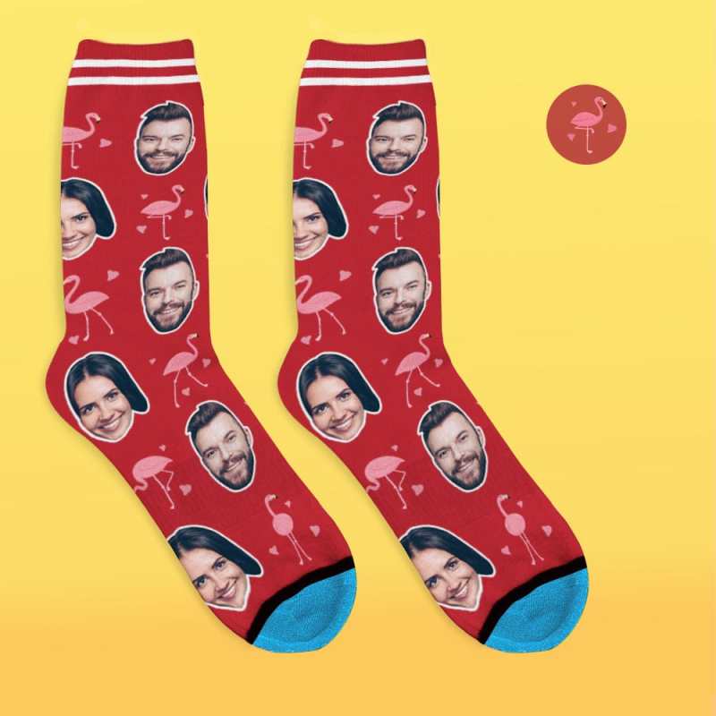 Personalisierte Socken mit Gesicht und Namen 3D Digital Bedrucken Personalisierte Geschenke - Flamingo