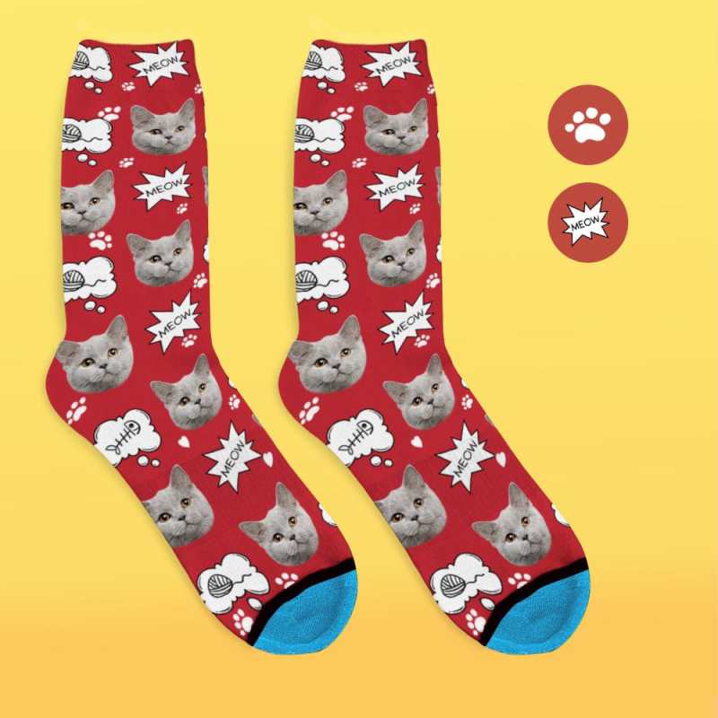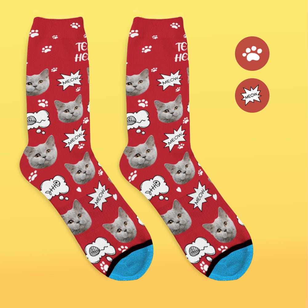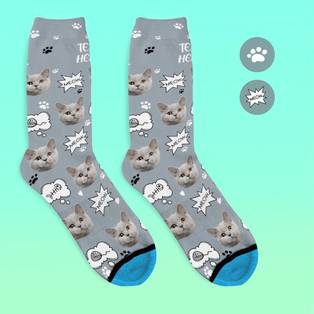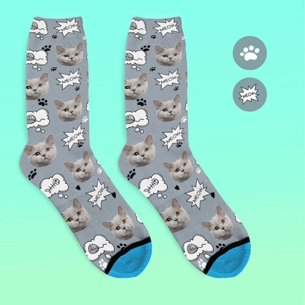 Personalisierte Socken mit Gesicht und Namen 3D Digital Bedrucken Personalisierte Geschenke - Miau