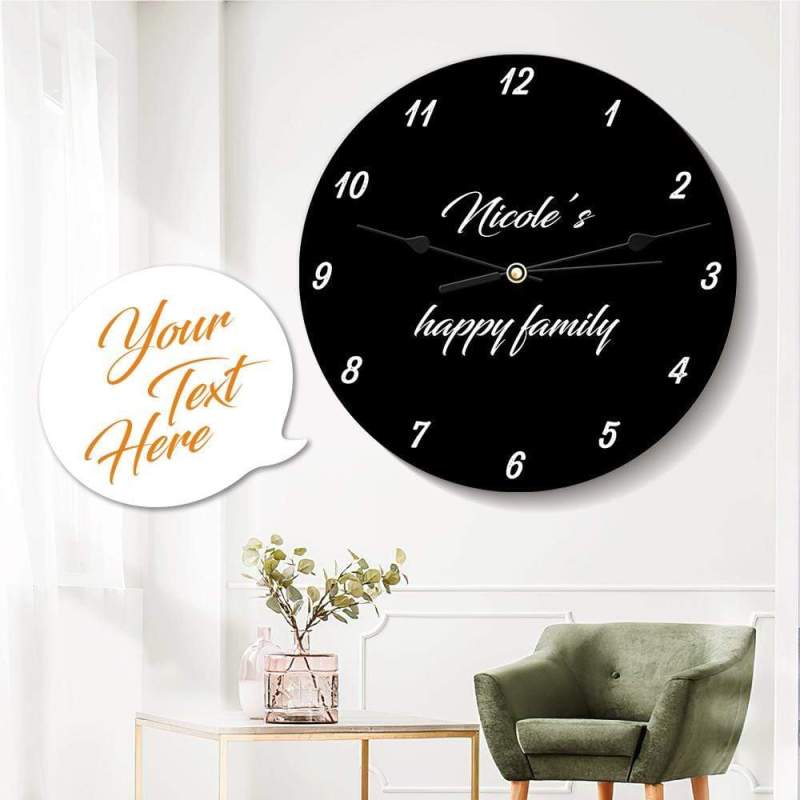 Personalisierte Wanduhr mit Text Runde Cchwarze Uhr 25*25cm