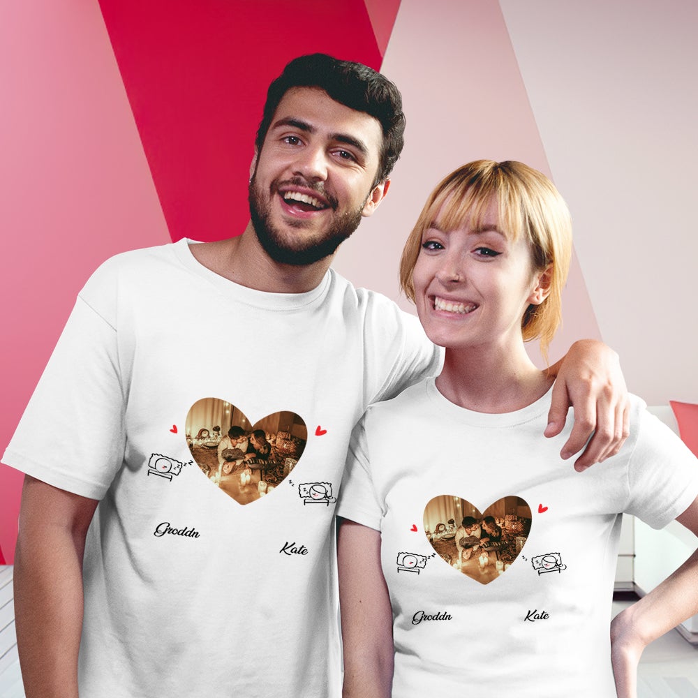 Personalisiertes T Shirt Bedrucken Pärchen T-Shirt mit Foto Valentinstagsgeschenke
