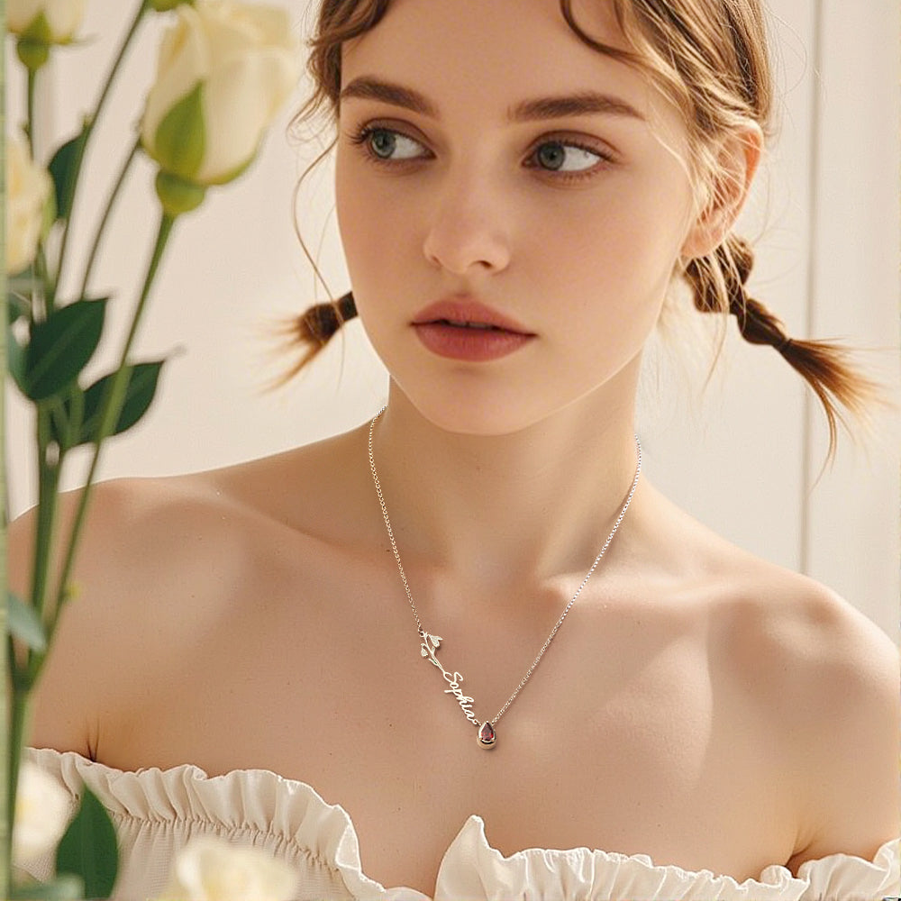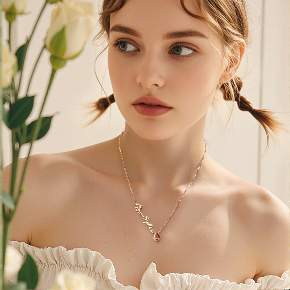 Personalisierte Geburtsblumen-halskette Mit Geburtsstein Und Namenskette, Schmuckgeschenk Für Sie