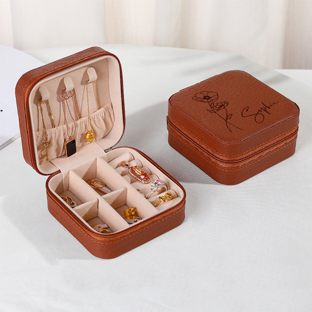 Personalisierte Geburtsblumen-schmuckschatulle, Individueller Schmuck-organizer, Aufbewahrungsgeschenk Für Sie
