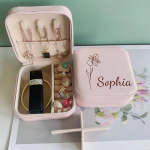 Dekorieren Sie Ihre Hochzeit mit dieser individuellen kleinen Schmuckschatulle. Passen Sie den Namen und die Geburtsblume jeder Brautjungfer auf dem tragbaren Schmuck-Reiseetui individuell an und machen Sie Ihre Hochzeitsfeier einzigartig und bedeutungsvoll. Diese Aufbewahrungsbox mit Geburtsblumen kann auch ein personalisiertes Geburtstagsgeschenk, Dankesgeschenk, Brautjungferngeschenk oder Muttertagsgeschenk für Ihre Liebsten sein.
